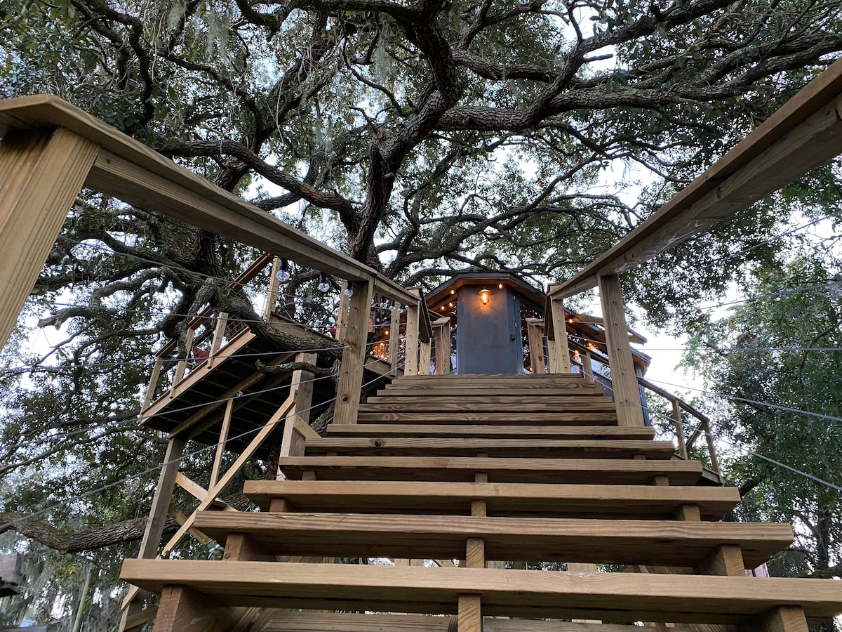 Puumaja on yksityinen lomakohde pariskunnille, jotka haluavat kokea taianomaisuuden. Katso videokierroksia U-Tubessa. Kirjoita Treehouse in the Cloud. Kiinteistöllä on tehty useita elokuva- ja muita valokuvauksia. Lähetä tekstiviestillä pyyntö ja tiedot, niin voimme neuvotella maksuista. Toinen AirBnB-kohteemme on aivan viereisessä talossa; Country gem horses close to Theme puistoja [linkki] Se on 1 000 neliöjalkaa ja siellä majoittuu kuusi.