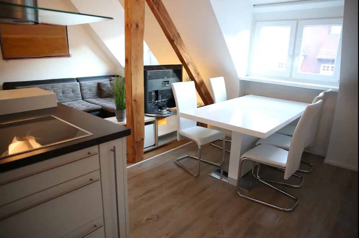 Tämä ainutlaatuinen huoneisto sijaitsee Nürnbergin vanhankaupungin sydämessä, ja se tarjoaa vierailijoille tyylikkään ja hienostuneen tunnelman sekä henkeäsalpaavan kauniin näkymän suoraan joelle. Nauti lomastasi 500 vuotta vanhojen historiallisten muurien sisällä ja seuraa Albrecht Dürerin jalanjälkiä matkalla takaisin keskiajalle. Täällä asuminen on erityinen kokemus, jota jopa aidot Nürnbergin asukkaat kadehtivat.