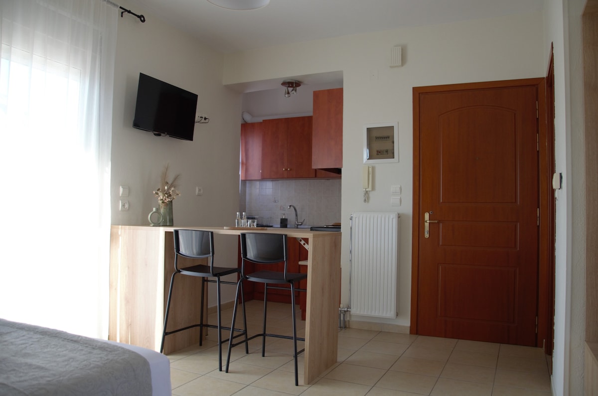 Tämä on valoisa studio, joka sijaitsee Volosin keskustassa sijaitsevan kerrostalon 1. kerroksessa. Siinä on Wi-Fi, ilmastointi, jääkaappi, tv ja keittotila, jossa on kaikki keittiövälineet. Tila sopii sekä yksittäisille vieraille että pariskunnille. Se on vain 3’kävelymatkan päässä Volosin rannikkotieltä, 2 minuutin päässä keskusmarkkinoilta (Ermos), ja siellä on helppo pysäköidä. Paikka on ihanteellinen retkille Pelionin viehättäviin kyliin, kuten Makrinitsaan, Portariaan.
