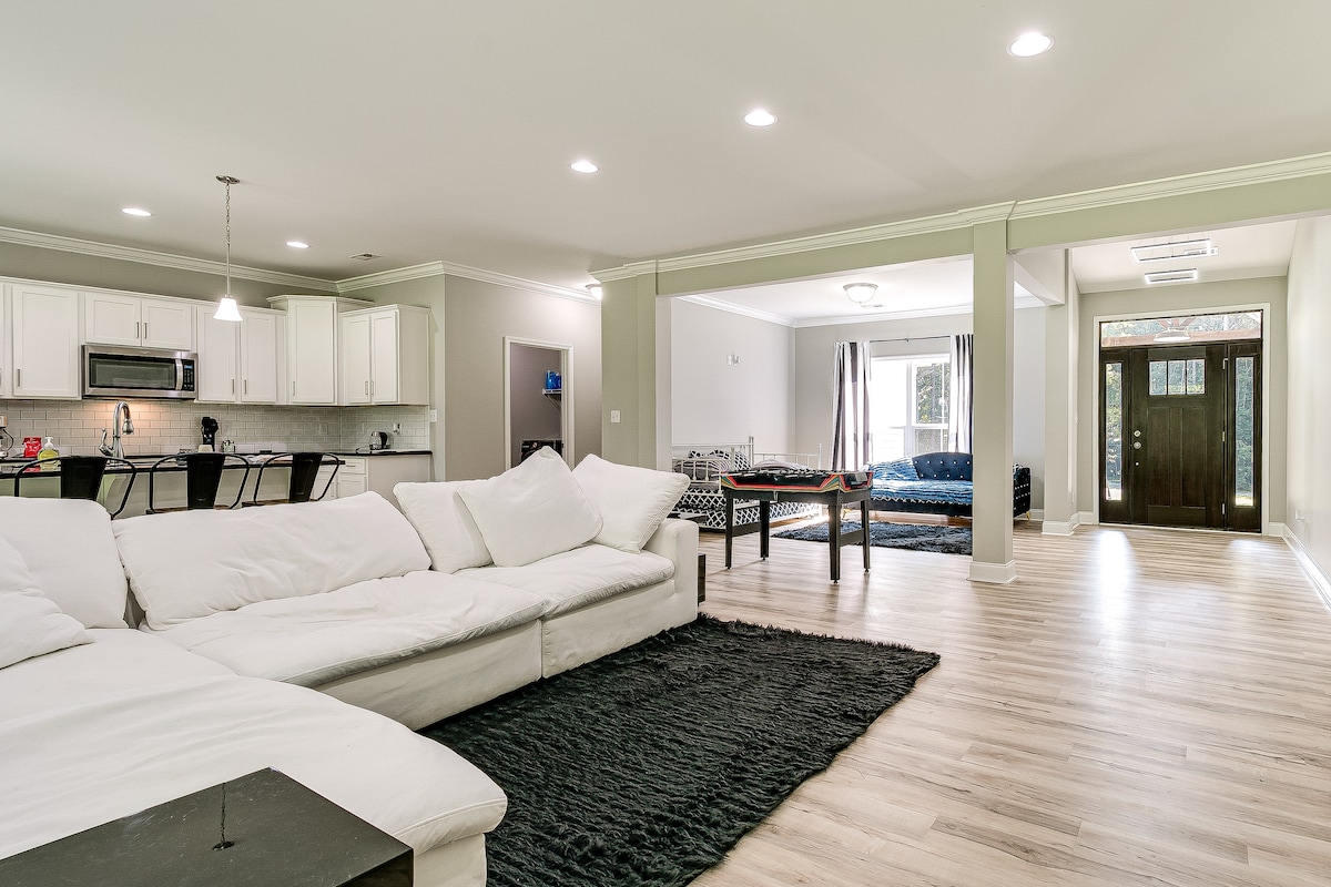 Tämä moderni rivitalo sijaitsee halutussa, hiljaisessa ja vehreässä naapurustossa ja tarjoaa tyylikkään tyylin, elegantin suunnittelun ja kaiken, mitä tarvitset rentouttavaan majoittumiseen. Sisällä voit nauttia avoimesta asuinalueesta, suuresta keittiöstä, kolmesta kauniista makuuhuoneesta, joissa on älytelevisiot, kimaltelevista kylpyhuoneista ja upeasta yksityisestä patiosta. Majoitu vain minuuttien päässä ravintoloista, baareista ja panimoista ja vain lyhyen ajomatkan päässä keskustasta, Bicentennial Gardenista, sairaaloista, The Friendly Centeristä ja Greensboro Coliseumista.