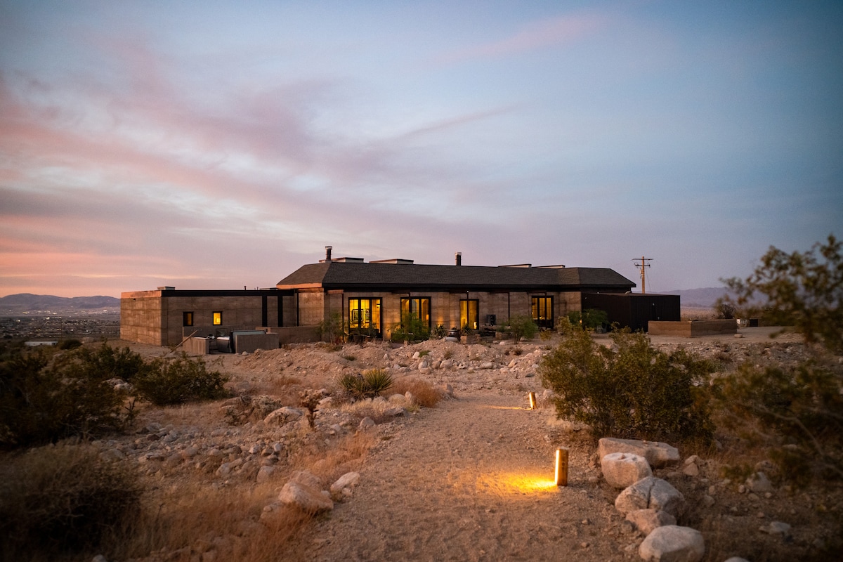Welcome to Shadow House, located within the serene Solace Retreat - a private 10-acre sanctuary in Joshua Tree. Surrounded by sweeping desert views, Shadow House invites you to embrace outdoor living at its finest. Enjoy peaceful mornings on the deck, afternoons lounging by the built-in hot tub or cowboy tub soaking pool, and evenings by the fire pit under a starlit sky. Whether you seek reflection, connection, or simply the calm of nature, Shadow House offers a truly transformative experience.