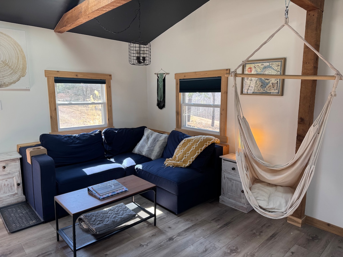 Unbelievable stargazing! Recently updated! Set on the highest point of our 20 acres in beautiful Hocking Hills enjoy hiking, fishing, hammocks, s’mores & more. Two cozy bedrooms, electric fireplace, fully equipped kitchen, Lovesac, cozy blankets, games/activities for kids. Pack & play w/ bedding. Satellite WiFi & streaming. 15 min to downtown Logan, 25 min to Athens & center to some of the greatest hiking & parks in the region! 🐶 2 pet max, 100 lb max combined. SEE HOUSE RULES BEFORE BOOKING!