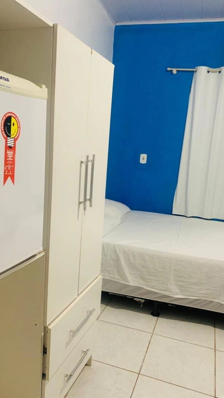 Suíte familiar, que acomoda até 3 pessoas, com uma cama de casal e uma cama de solteiro, acompanha um frigobar, guarda roupas, ar-condicionado janela e banheiro privativo. Em área central de Porto Velho-RO há 5 minutos da rodoviária, e há 4 minutos do Supermercado Irmãos Gonçalves. E próximo ttambém de farmácia, restaurantes e lanchonete. Aproveite o fácil acesso a tudo isso ficando neste espaço charmoso.