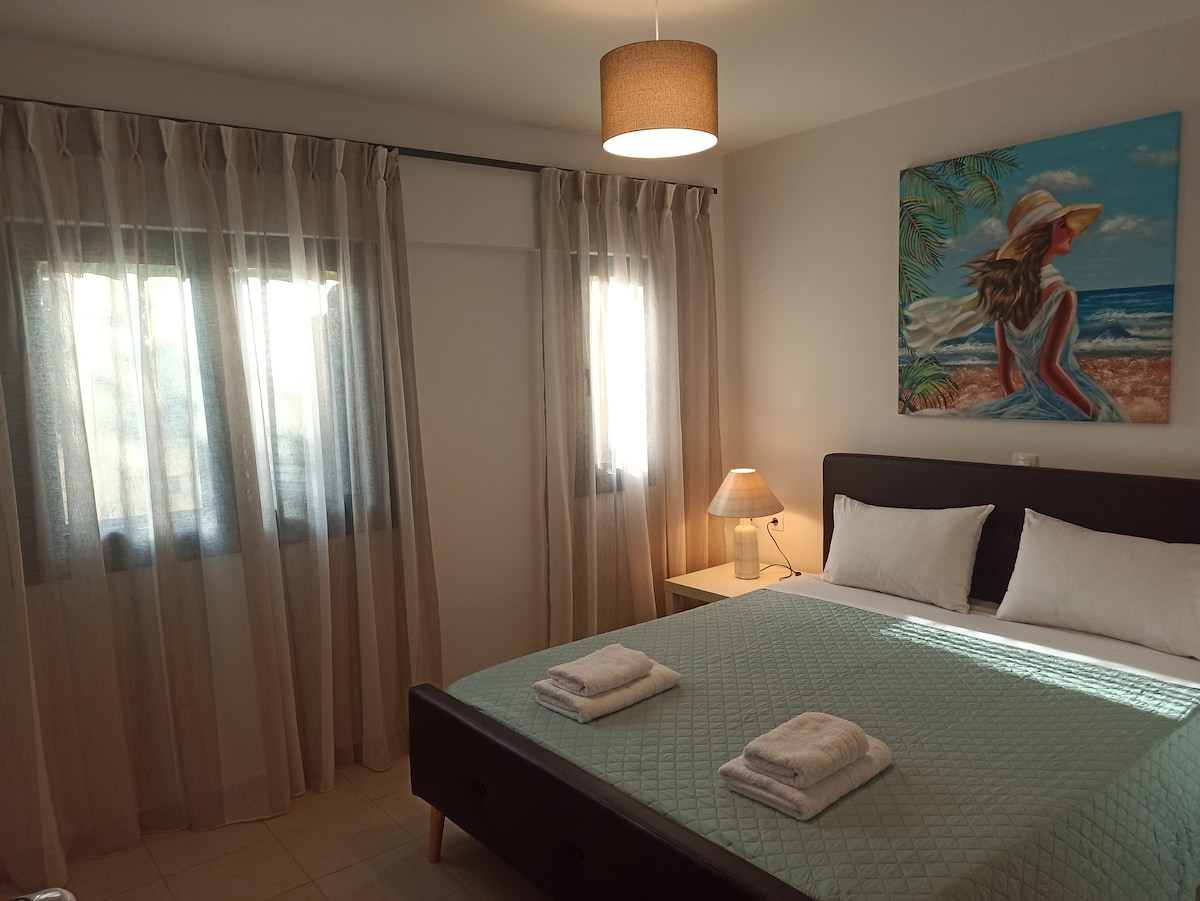 Nauti viinistäsi ja ihaile Rethymnon venetsialaisen linnan ja sinisen meren näkymiä! Jos haluat uida, huoneisto sijaitsee aivan rannalla! Moderni yhden makuuhuoneen huoneisto (50 neliömetriä), täysin varusteltu ja siihen mahtuu jopa neljä henkilöä. Huoneisto sijaitsee rauhallisella alueella, aivan hiekkarannalla (sininen lippu -palkinto). Vanhakaupunki on 15 minuutin kävelymatkan päässä kauniilla Rethymnon rantakadulla. Ilmainen varjossa pysäköinti