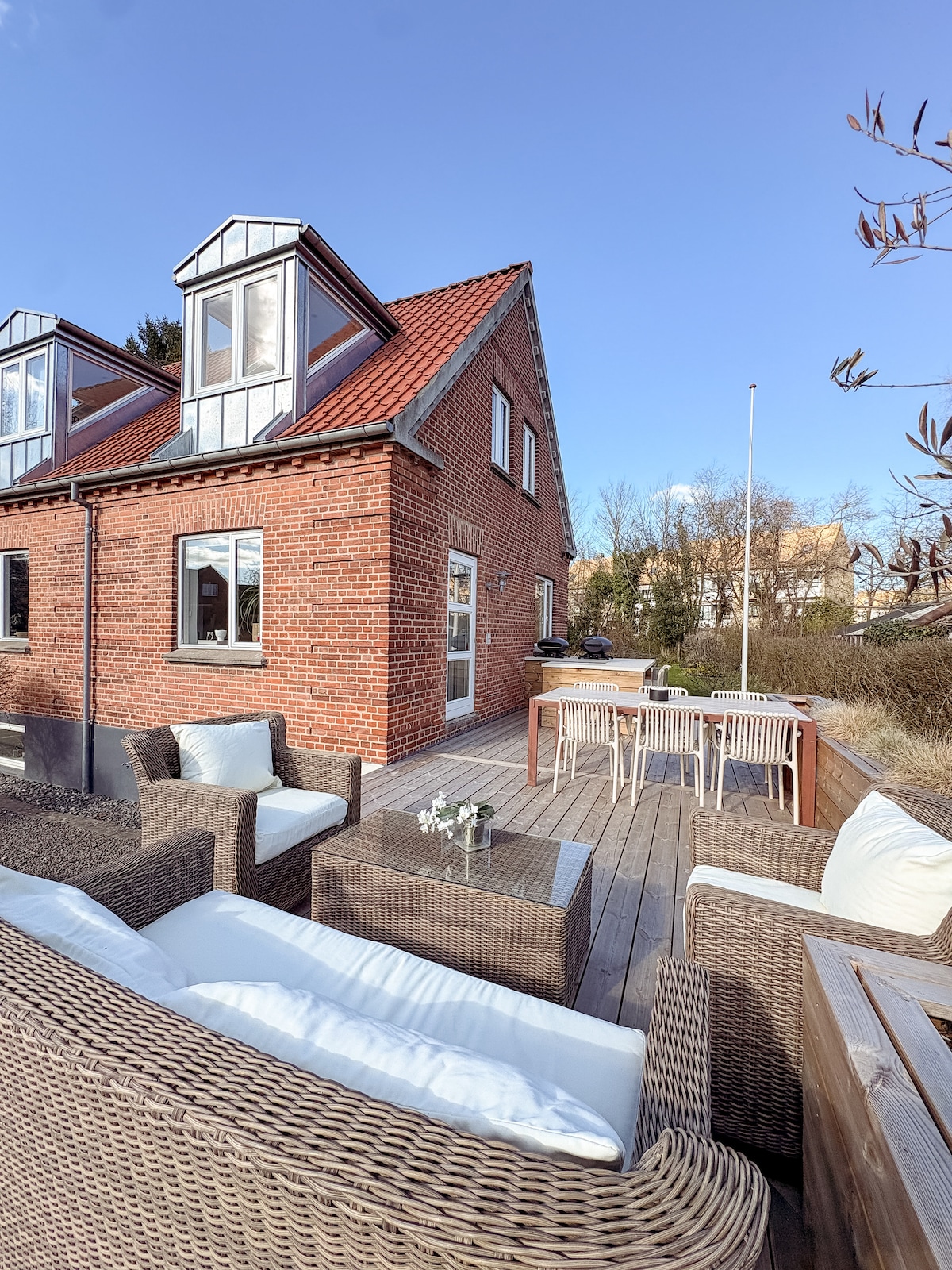 Valoisa ja ihana rivitalo, jossa on ilmainen pysäköinti hiljaisessa ympäristössä. Noin 5 minuuttia Aarhus Centrumiin polkupyörällä ja 20 minuuttia jalkaisin sekä 5 minuutin kävelymatka lähimmälle linja-autoasemalle. Majoittaa 3 yön yli majoittuvaa vierasta, joilla on parivuode ja vuodesohva. Talo koostuu suuresta keittiö-olohuoneesta, olohuoneesta, kahdesta huoneesta, kodinhoitohuoneesta, jossa on mahdollisuus pestä vaatteita, ja kylpyhuoneesta. Siellä on oma pieni sisäpiha, jolla on mahdollisuus ruokailla ulkona ilta-auringossa.