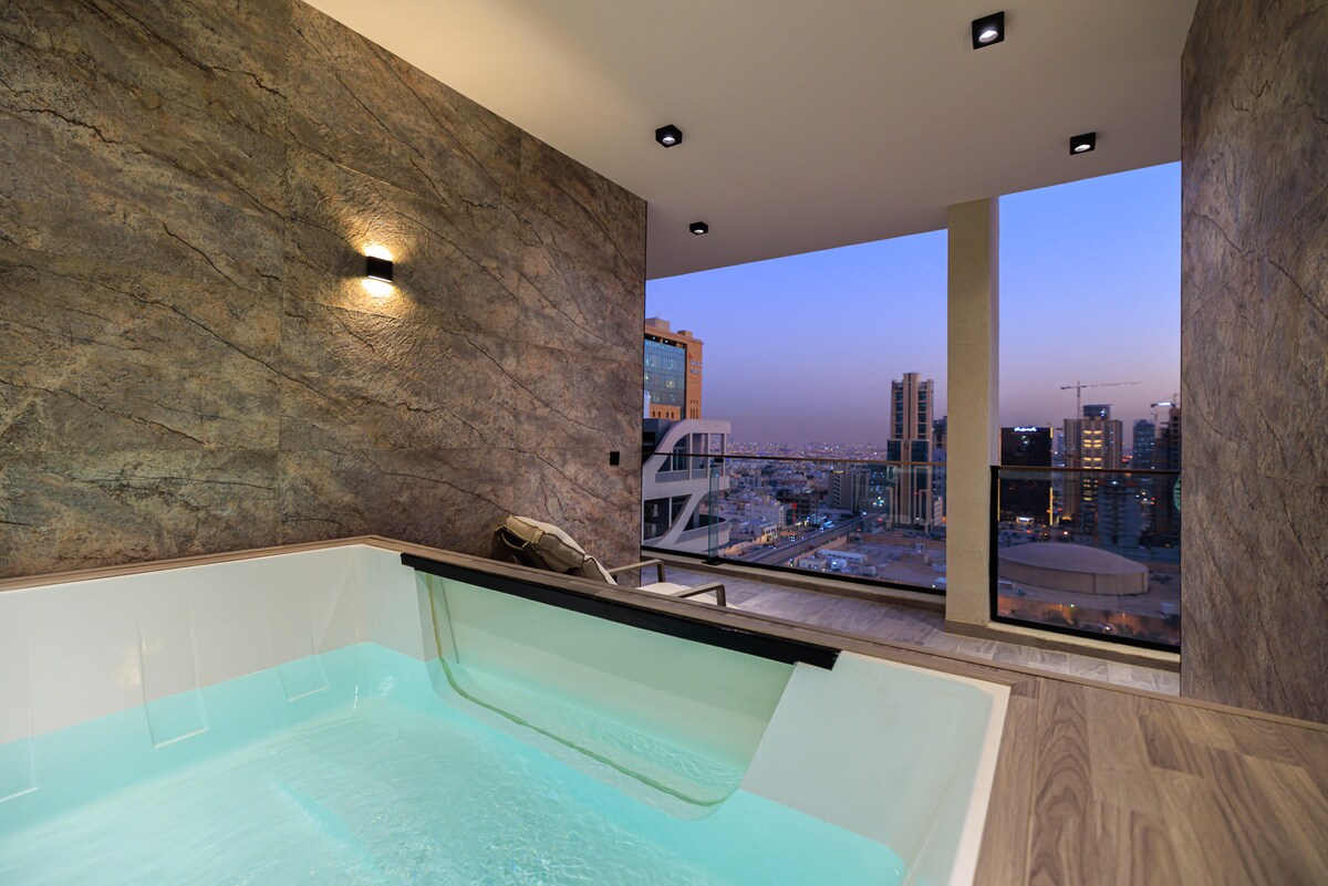 شقة راقية في برج سافانا – موقع مثالي وبلكونة خاصة تمتد على كامل الشقة تفاصيل الشقة: • 🛏️ غرفتا نوم فسيحتان مزودتان بأسِرّة مريحة وفراش فاخر • 🛋️ صالة جلوس راقية بتصميم عصري • 🍳 مطبخ مجهز بكامل الاحتياجات اليومية (ثلاجة، مايكرويف،أدوات طبخ، وغيرها) • 🚿 دورة مياه أنيقة مزودة بجميع المستلزمات الأساسية • 📺 تلفاز ذكي مع تطبيقات (Netflix، شاهد، YouTube) • 🌐 إنترنت فائق السرعة (واي فاي عالي الجودة) • ❄️ تكييف مركزي مريح • 🏊🏻جاكوزي خاص داخل الشقه • 🏋️♀️نادي رياضي