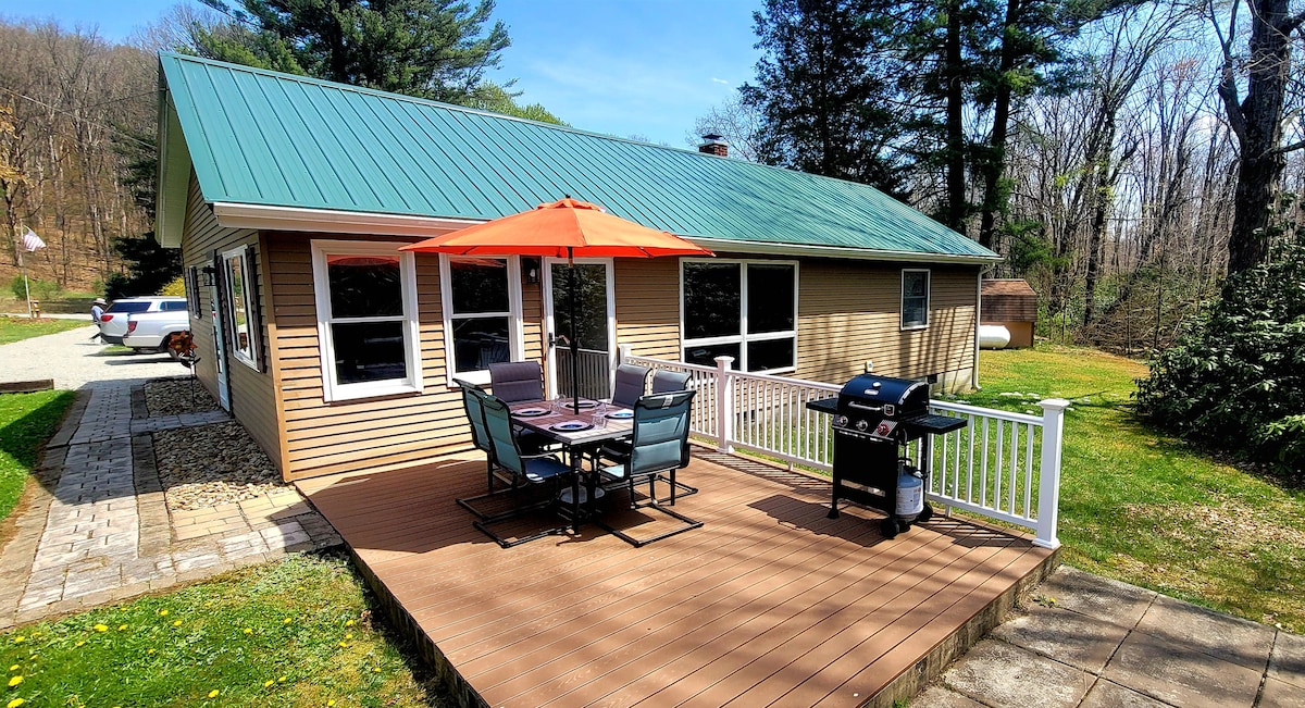 OHIOPYLE< SEVEN SPRINGS< FALLINGWATER <STATE GAME LANDS** * Ski, Bike, Patikointi, kelkkailu, metsästys, kala -1,5 mailia OHIOPYLElle, 20 minuuttia SEITSEMÄÄN LÄHTEESEEN!!! Täydellinen pariskuntien retriittiin tai viikonloppu ystävien kanssa. Söpö ja kodikas hauskalle lomalle. Ulkotulikuoppa. Täysin varustettu keittiö. Sijainti>Sijainti>Sijainti!! Talven erikoisuuksia saatavilla! Liinavaatteet ja pyyhkeet sisältyvät hintaan. 5 minuuttia Fallingwateriin 2 minuuttia koskenlaskuun, patikointiin ja pyöräilyyn