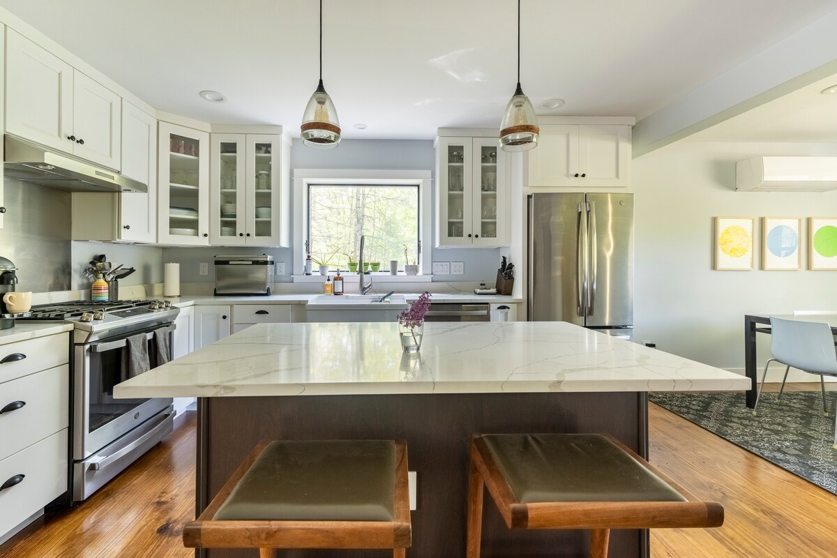 Rentoudu tässä kodikkaassa huoneistossa kauniissa siirtomaatyylisessä talossamme keskellä historiallista Stone Ridgeä, NY. Se tarjoaa täydellisen yhdistelmän maalaismaisia ja moderneja tyylejä, ja se on koristeltu alkuperäisellä taiteella. Täysin varustettu keittiö tarjoaa kaiken, mitä tarvitset valmistamaan hyvän aterian. Se on täydellinen kaikkina vuodenaikohtina ja sijaitsee kävelyetäisyydellä ravintoloista, kahviloista, joogastudioista ja ruokakaupoista. New Paltz, Woodstock, Minnewaska, Mohonk Preserves, Shawangunk Ridge ovat kaikki lyhyen 20 minuutin ajomatkan päässä.