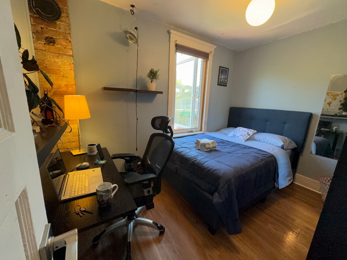 Yksityinen huone kolmannessa kerroksessa kävelymatkan päässä sijaitseva huoneisto, joka sijaitsee aivan College and Gracessa Toronton keskustassa. Huone on valoisa ja siellä on paljon luonnonvaloa. Tuntuu todella kodikkaalta ja mukavalta. Siellä on myös yksityinen pääsy parvekkeelle. Älä varaa, jos sinulla on ongelmia jyrkkien portaiden, hallitsemattomien lämpöympäristöjen tai pienikokoisten kylpyhuoneiden suhteen. Ei suositella herkille ihmisille. Ei suositella ihmisille, jotka kamppailevat painavien matkatavaroiden kanssa. Ei hissiä.