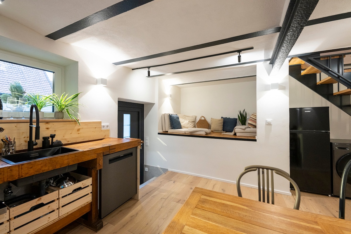 Valoisa ja tilava loma-asuntomme on valmis vastaanottamaan vieraita navetan kunnostuksen jälkeen. Voit nauttia lomastasi kahdessa makuuhuoneessa, kahdessa kylpyhuoneessa ja kauniissa olo-, ruokailu- ja keittoalueella. Olipa kyseessä pyöräily, kävely tai SUP-lautailu, Mainin varrella voi viettää monia mukavia tunteja. Myös Würzburgin ja Rothenburgin kaupungit sekä lukemattomat pienet frangialaiset viinikylät sijaitsevat lähellä.