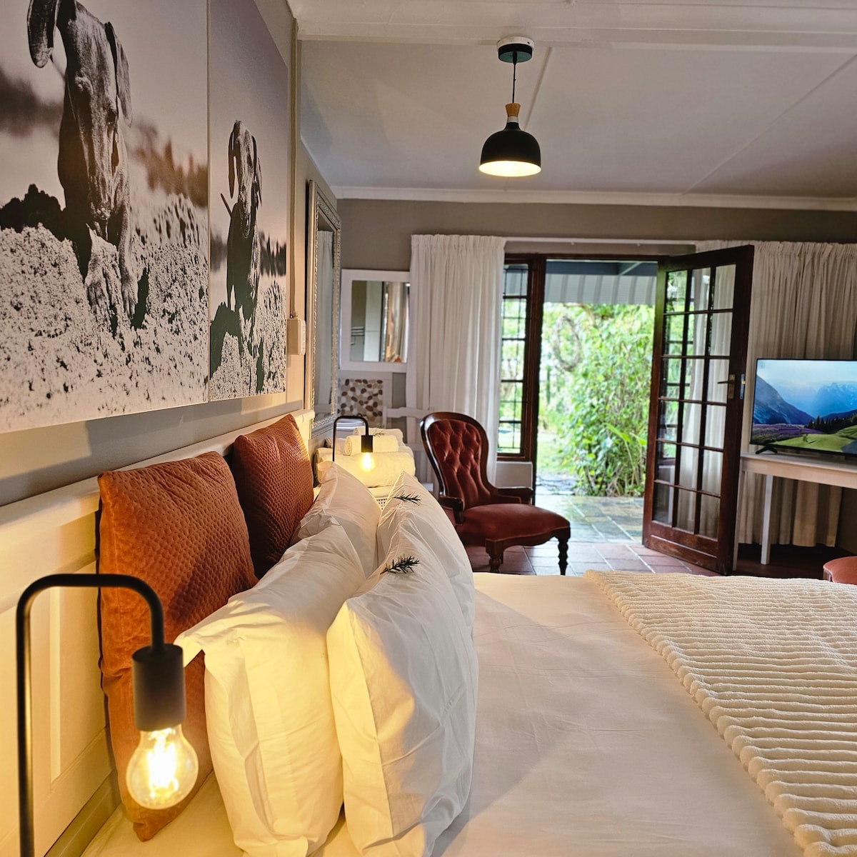 Anna aistiesi heräämisen houkutella sinua. Haistele kukkien ja fynbosien makeaa tuoksua, kuuntele sammakoiden serenadia, näe värikkäitä lintuja, maista kasvutarhastamme ja hedelmätarhastamme peräisin olevien hedelmien ja vihannesten aromia. Ihanteellinen pariskunnille tai pariskunnille, joilla on lapsi (ei sovellu kolmelle aikuiselle). Vuori, puutarha, lammikko (täynnä sadevettä, vuodenajasta riippuen). Ei vain huone jonkun talossa tai yhteisten tilojen jakaminen. Oma pieni rauhallinen paikkasi. Koiramme kulkevat vapaasti kohteessa.