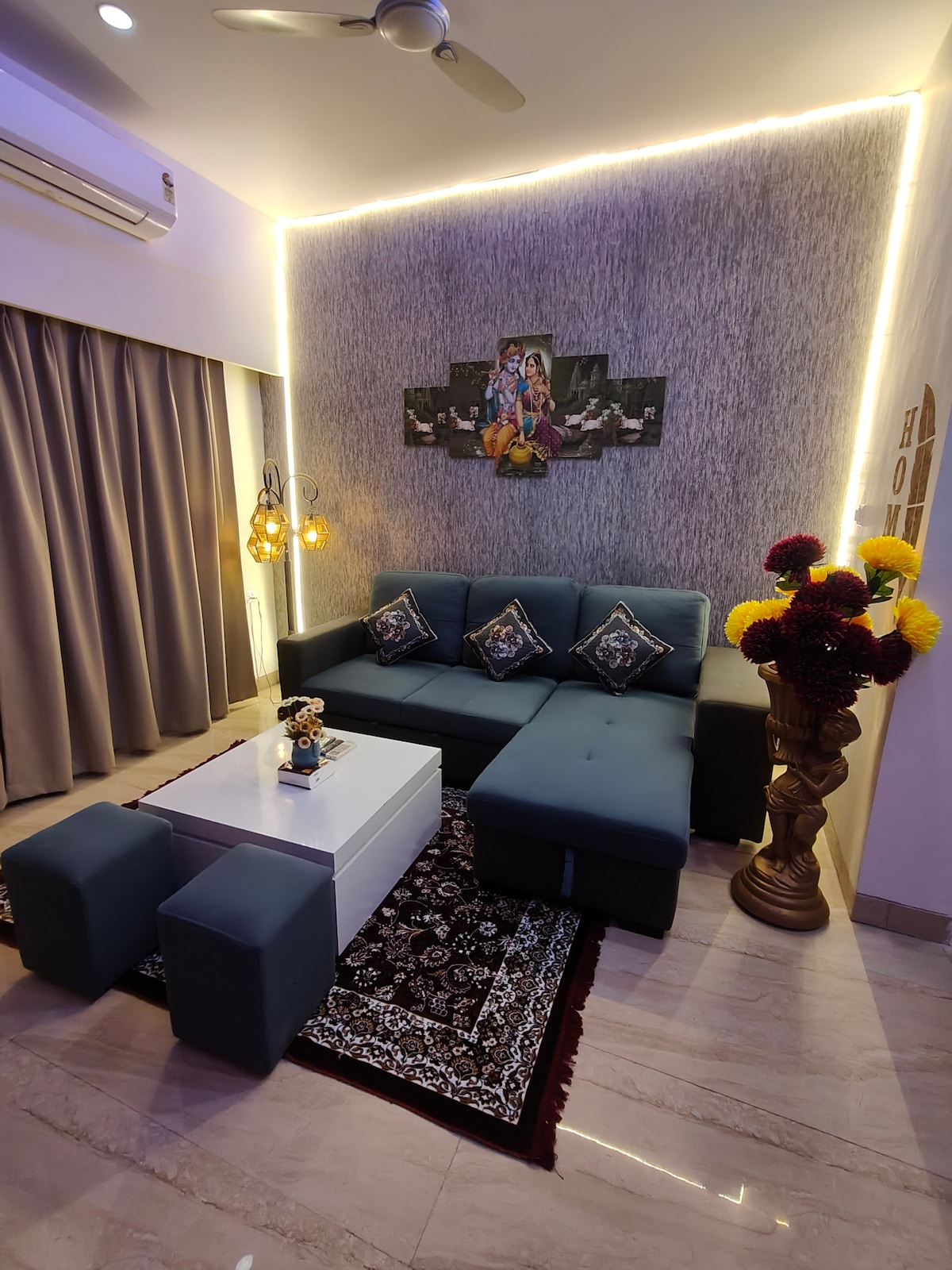 Huoneistomme on suunniteltu upottamaan sinut Vrindavanin jumalalliseen tunnelmaan harkituilla Radha-Krishna-taideteoksilla ja rauhallisilla yksityiskohdilla. Parveke on rauhallinen paikka, jossa voit rentoutua. Koe ylellisyys Vrindavanissa! Tämä huoneisto sijaitsee vain muutaman minuutin päässä Prem Mandirista, ISKCON-temppelistä ja Banke Biharista. Siellä on valtavasti rauhaa ja nykyaikaisia mukavuuksia. Nauti itsepalvelusisäänkirjautumisesta, nopeasta WiFi-yhteydestä, täysin varustetusta keittiöstä, kylpytuotteista ja avuliaasta talonmiespalvelusta, joka antaa paikallisia suosituksia.