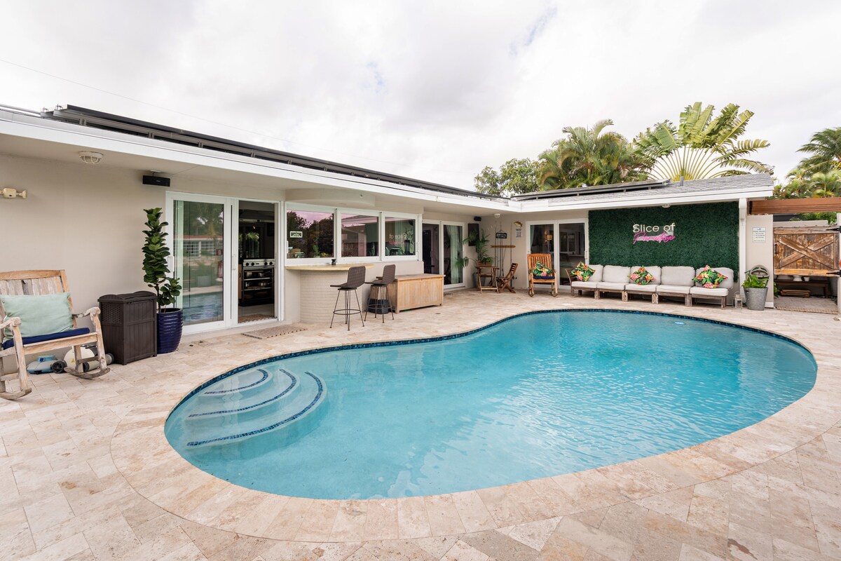 🌴Tervetuloa kanavan varrella sijaitsevaan lomakohteeseesi! Pidä hauskaa uima-altaalla perheen kanssa tai nauti juomia porealtaassa ja uudessa baarissa. 🍹Ulkona olevalla istuinalueella on televisio📺, joka sopii täydellisesti suosikkijoukkueesi pelien katseluun tai perheen elokuvailtaan. 🍔🔥Rentoudu huvimajan alla grillausalueella 💪🏋️♀️tai treenaa ulkokuntosalilla. 🛌Mukavat makuuhuoneet ja kaksi kunnostettua kylpyhuonetta takaavat mahtavan majoittumisen. Vain muutaman minuutin päässä Pompano Beachin kauniista rannoista ja ruokapaikoista! 🏖️