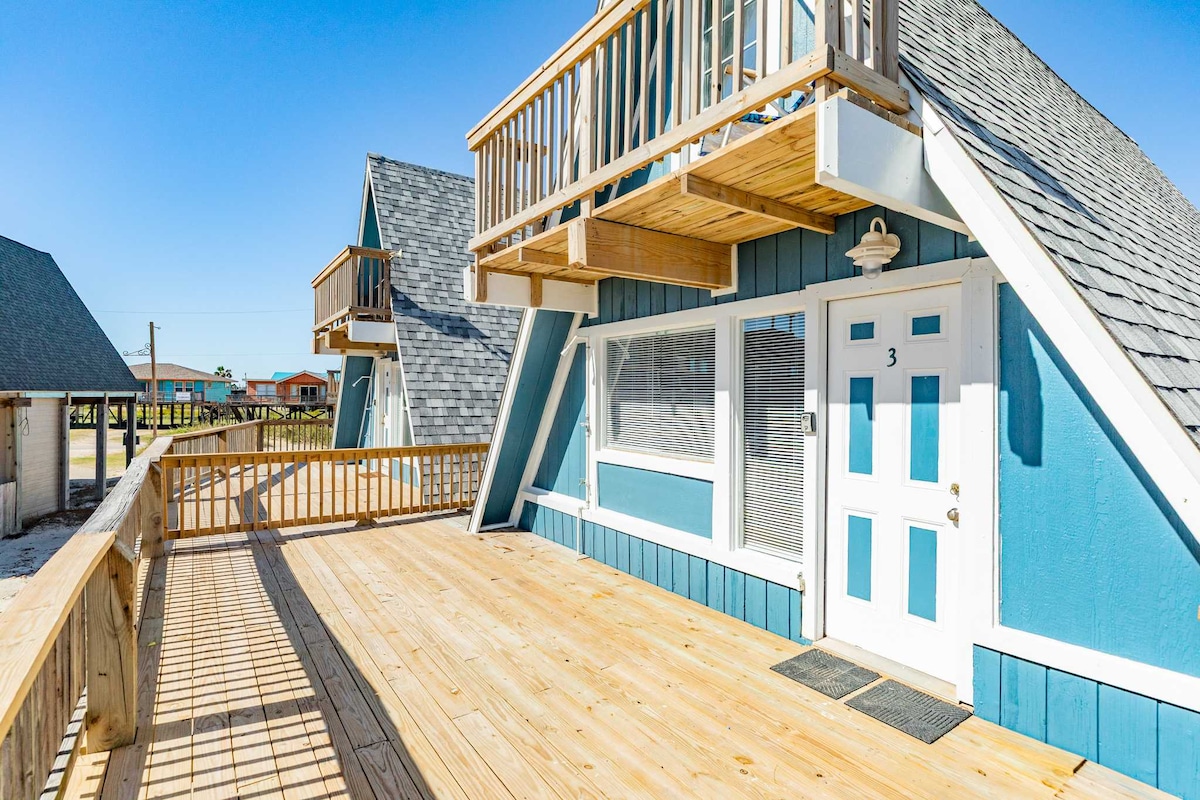 Tässä rakastetussa rantakorttelissa sijaitsevassa kulmahuoneistossa Stewart Beachin ja East Beachin välissä on suuri parveke ja laajat näkymät lahdelle. Se on hyvin varusteltu kahdelle tai yksin retriittiin. Lomakeskus tarjoaa uima-altaan ja pickleballia! Rannalle ei ole ylitettävää katua, mutta condo-huoneisto on lähellä Galvestonin keskustaa ja Seawallia. Nauti upeista auringonnousuista ja kuun katselusta, radan risteilyalusten saapumisista ja liikkeistä, tutustu aktiviteetteihin rannalla, kellu lämmitetyssä uima-altaassa tai rentoudu ja katsele aaltoja!
