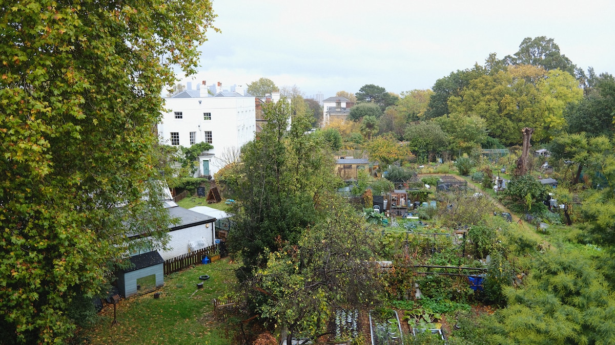 The Green Escape sijaitsee vehreän 140 jalan puutarhan päässä, ja se tarjoaa viihtyisän mökkiretriitin Lontoon elämän hälinästä. Se on puiden, kukkien ja villieläinten ympäröimä rauhallinen satama, jossa luonto tulee luoksesi — mukaan lukien vierailut harvinaisista vihreistä papukaijoista, jotka ovat todellinen kaupungin yllätys. Etelään päin oleva puutarha nauttii auringonvalosta koko päivän, joten se on ihanteellinen paikka rentoutua auringon laskiessa. Yksityisellä pääsyllä sivuportin kautta voit nauttia täydellisestä yksityisyydestä ja tyyneydestä tässä piilotetussa helmessä.