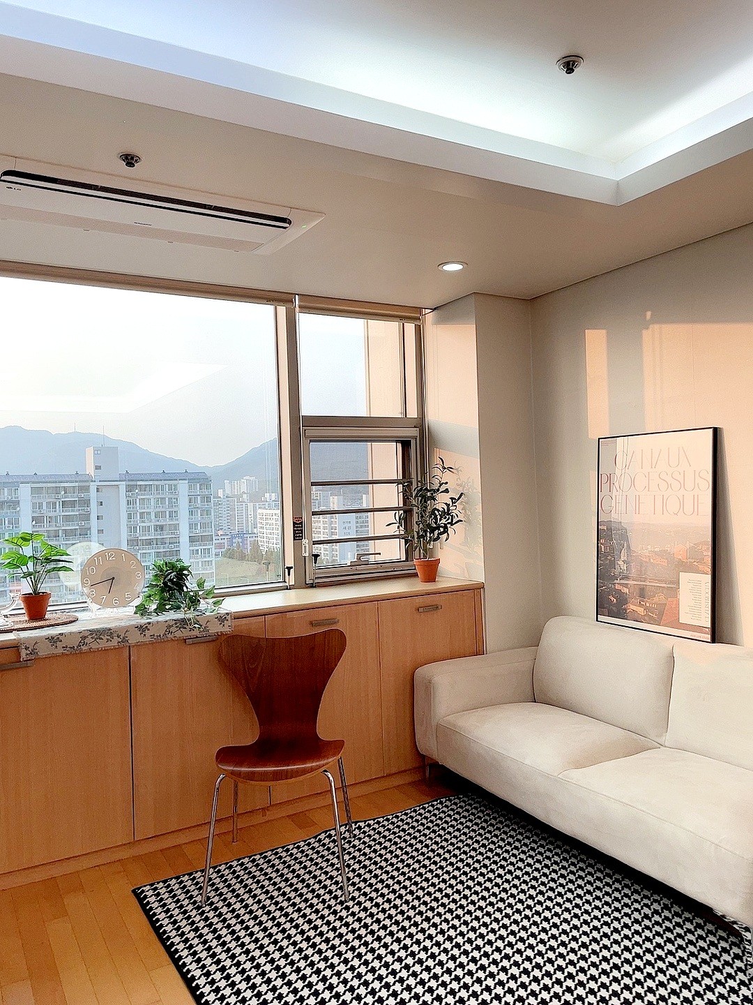 Gwanggyo Jungang -aseman / Lake Parkin vieressä Galleria-tavaratalo ja Lotte Outlet 1 minuutin kävelymatkan päässä Rakennuksessa on erilaisia mukavuuksia, kuten Starbucks, Subway, CGV ja Kyobo Bookstore. Majoituksen edestä kulkee bussi Starfieldiin. Olen kiinnostunut sisustuksesta, joten olen kiinnittänyt huomiota vuodevaatteisiin, huonekaluihin, Valaistukseen, kasveihin ja viinilaseihin on kiinnitetty huomiota. Vuodevaatteet: 3 peittoa, 3 mattoa, 6 tyynyä 1 kpl queen-size-patja Sohva: Giacomo 3 hengen kangassohva Sänky: Jinnus-patja, IKEA Malm -runko TV: 55 tuuman Serif-älytelevisio Kodinkoneet: tuuletin, pölynimuri, hiustenkuivaaja, Nespresso, riisikeitin, sähkökeitin, suoristusrauta, ilmankostutin, ilmankuivain Mukavuudet: kertakäyttöinen hammasharja / hammastahna, vaahtopesu, käsisaippua, vartalonpesuaine, shampoo, hoitoaine, vartalovoide, käsivoide Astiat: kattila paistinpannu haarukka ja lusikka lasten haarukka ja lusikka hedelmäkulho lautaset viinilasit mukit erilaiset mausteet vesi Muut: Kirjat/lehdet, ensiaputarvikkeet, lautapelit Pitkäaikaiset majoittumiset ovat tervetulleita. 7 päivää tai enemmän 10 % 15 % alennusta kuukaudesta ja 20 % alennusta yli 8 viikosta.