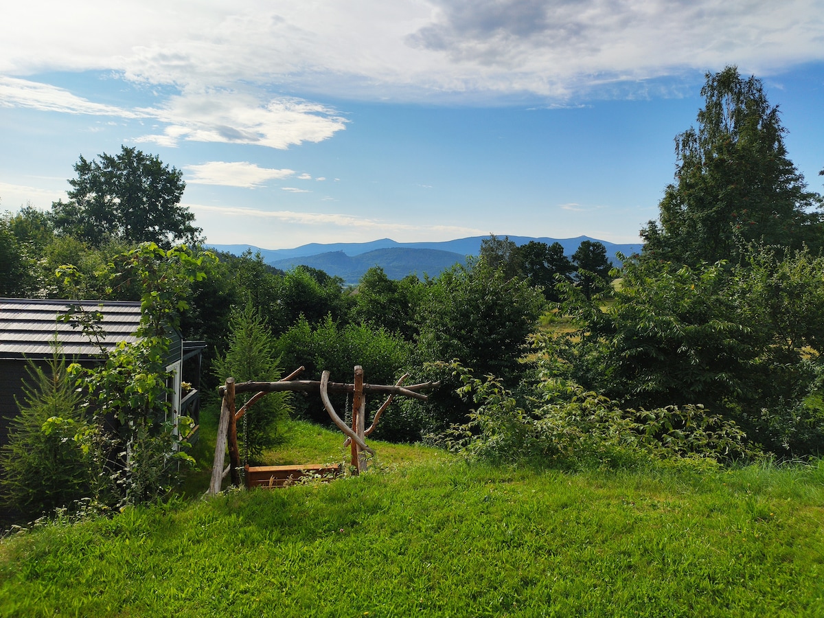 Majołekin lato - talo, josta on näkymä Izera-vuorille.