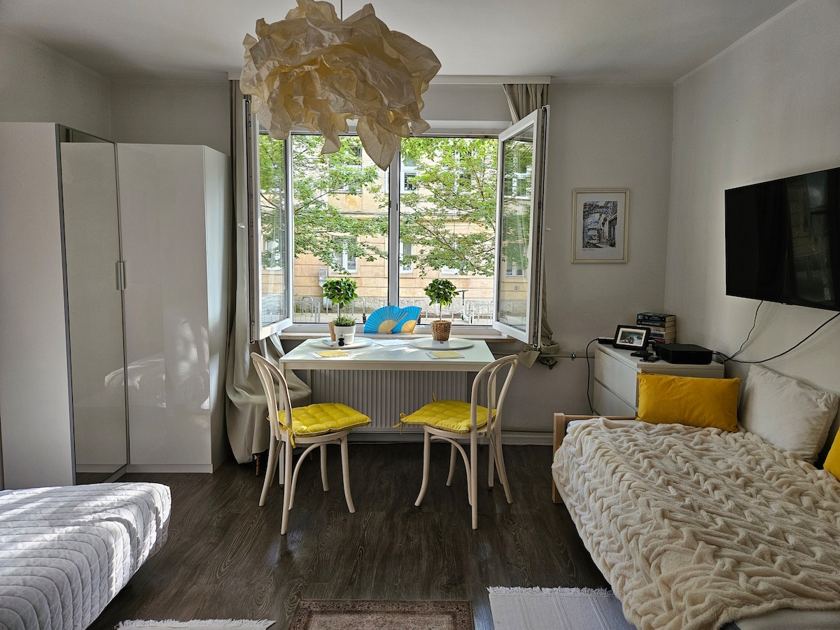 Kirkas, puhdas ja viihtyisä 2-kerroksinen yksiö (26 m2). Alakerran tilat: kylpyhuone, keittiö, olohuone, mukava sohva, työpöytä 3 metrin ikkunan vieressä. Yläkerran: mukava parivuode, vaatekaappi, työpöytä. Studio on täysin varusteltu (siellä on myös wifi). Se sijaitsee rauhallisella alueella Kuninkaallisen reitin (Varsovan edustavin osa) vieressä. Puisto, kauppoja, ravintoloita, kuntosali lähellä. Se on täydellinen: - matkailijoille, jotka etsivät lähtökohtaa nähtävyyksien katselulle - liikematkailijat – ihmisille, jotka etsivät kodikasta ja hiljaista lepopaikkaa :)