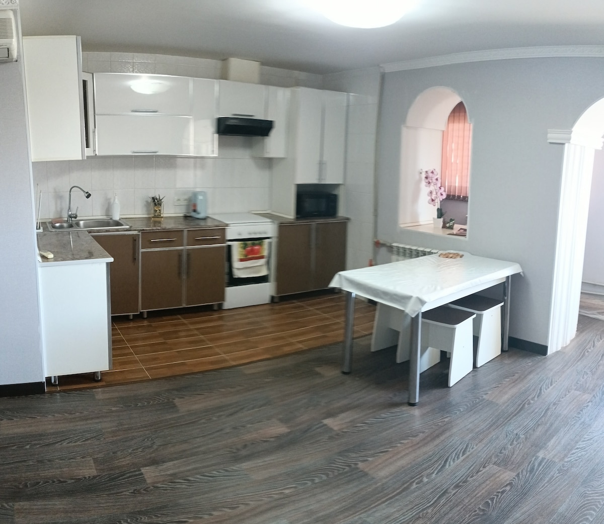 Hyvät vieraat ja asukkaat Kyzylorda, Tarjoan olohuone huoneisto Abay Avenue, 28a.Huoneistossa on älykäs TV,wifi,kaikki tarvittavat kodinkoneet. Vessassa on poistotuuletin ja hygieeninen suihku. Asunnon ikkunat ovat pihalle päin, siellä on abalcony. Kävelymatkan päässä on stadion,sisäuima-allas ja muita urheilutiloja. Bussireitit kaikkiin suuntiin:rautatieasemalle,torille,lentokentälle jne. Pihalla on parkkipaikkoja, joissa on videovalvonta,lasten leikkipaikka.