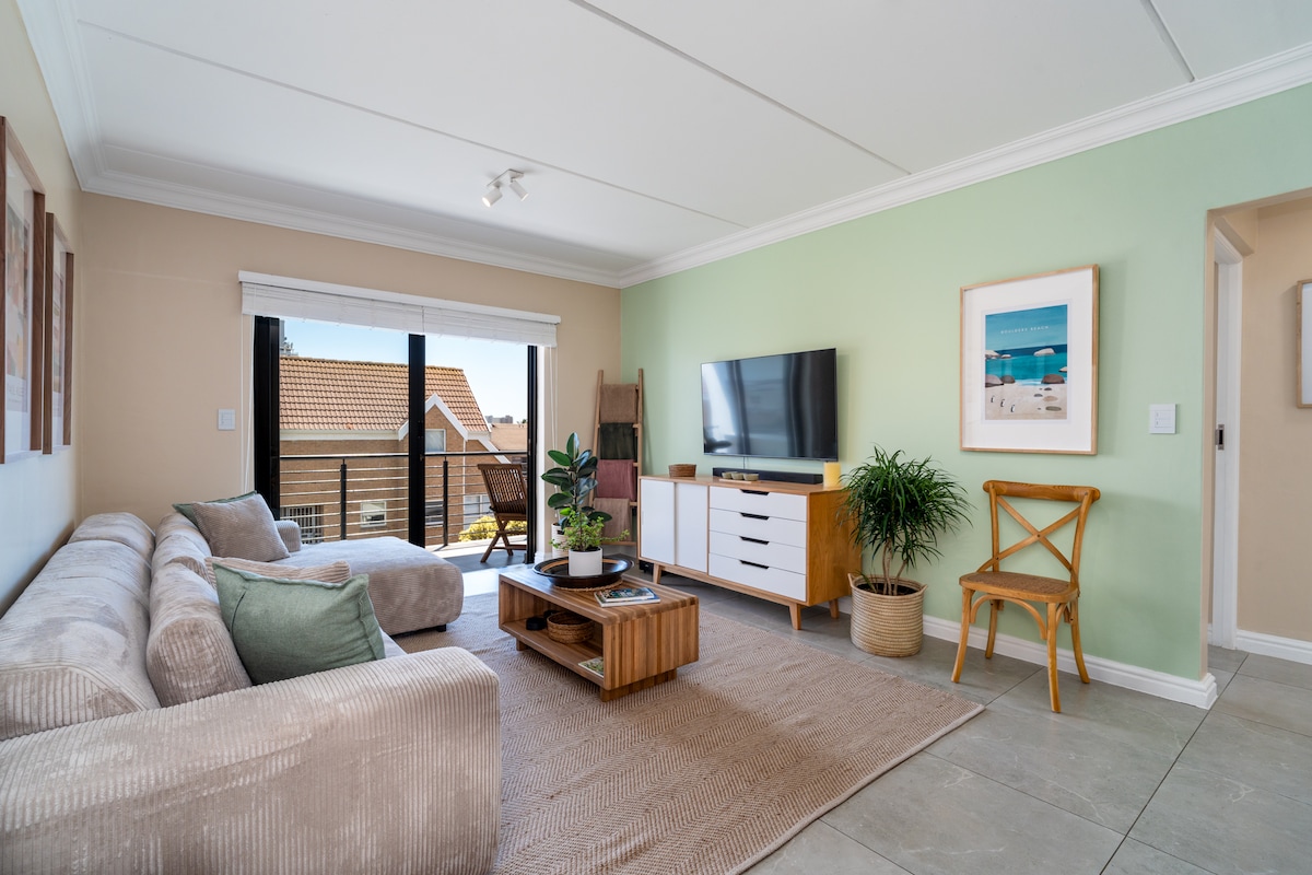 5 minuutin kävelymatkan päässä rannalta ja monista upeista ravintoloista. 5 minuutin kävelymatkan päässä Wooliesista, Pick 'nPaystä ja herkullisesta kotitekoisesta ruokapalvelusta. Ylin kerros, moderni, uusi huoneisto, jossa on avokeittiö, oleskelutila, jossa on erillinen kylpyhuone (vain suihku). Älytelevisio(Netflix ja DSTV), rajoittamaton WIFI. Makuuhuone/queen-vuode. Mini gas Weber BBQ parvekkeella. Keittiössä on pesukone, kaasuliesi ja uuni. Turvallinen peitetehtävissä oleva pysäköintialue ja 3 minuutin kävelymatkan päässä bussipysäkiltä. Pyöräilyreitti 1 katu ylös. (Ei hissiä) TAKAISIN SÄHKÖÄ SAATAVILLA