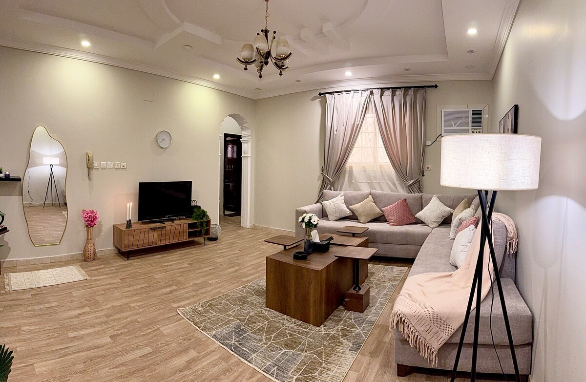 شقة عائلية بديكور عصري مثالية لإقامة مريحة وهادئة • سرير كنغ واسع ومريح. • صالة أنيقة بجلسة عملية. • حمام حديث بتشطيبات فاخرة. • تكييف وإضاءة مميزة لراحة أكبر. 🌟 خيار مثالي للزوار الباحثين عن الراحة سواء للعمل أو الاستجمام