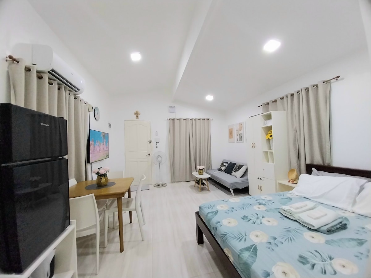 Tervetuloa rentouttavaan lomakohteeseesi Tambuli Seaside Resortin sydämessä – ainoa asuinkohde Cebussa, josta on suora pääsy rannalle! Tämä tyylikäs yksiö sopii täydellisesti pariskunnille, digitaalisille nomadeille tai yksin matkustaville, jotka etsivät mukavuutta, kätevyyttä ja rannikon viehätystä. Nauti queen-vuoteesta, kahvinkeittimestä, Netflixistä, 300 Mbit/s:n WiFi-yhteydestä, täysin varustetusta keittiöstä ja rauhallisesta parvekkeesta, jolta on puutarhanäkymä. Tämä viihtyisä tila sopii sinulle, olitpa etätyössä tai vain rentoutumassa.