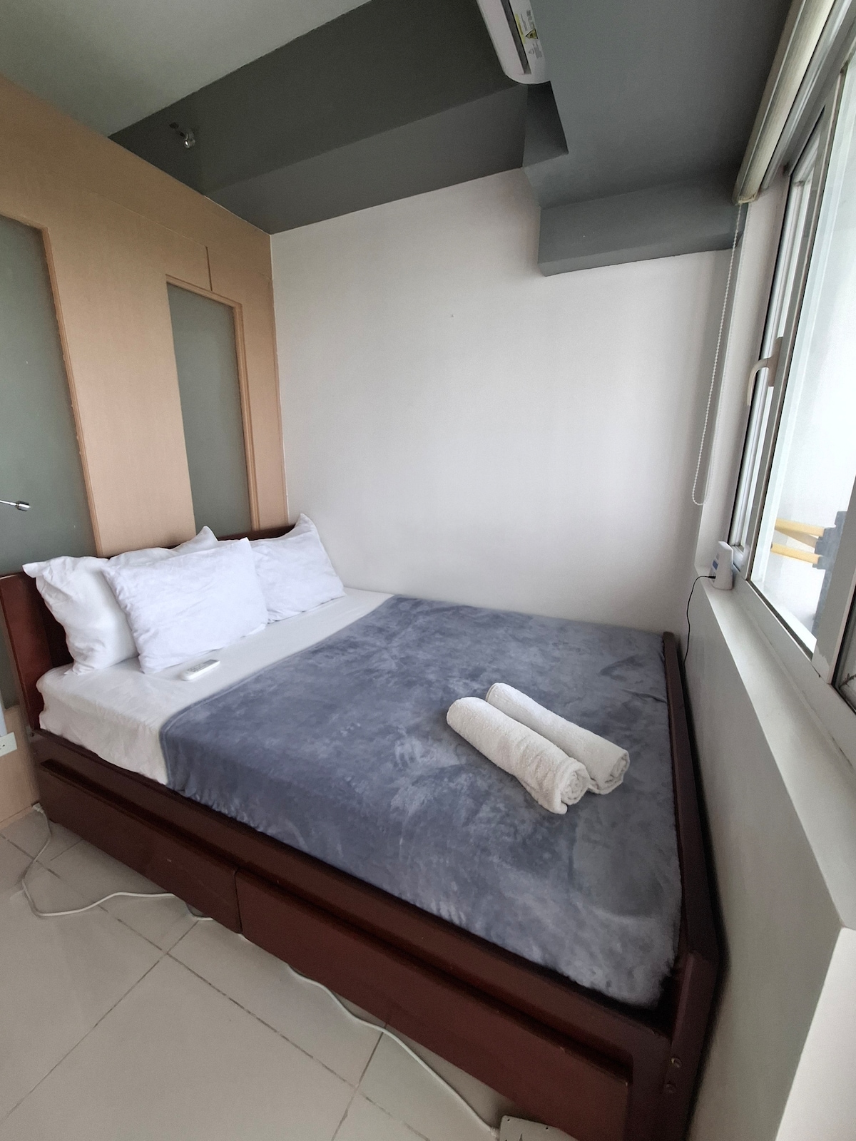 The Crest Wind Residences Tagaytay (Taal-järvi/moottoritienäkymä Ominaisuudet: 55 tuuman älytelevisio (erityinen Netflix-tili) Wifi (30–50 Mbit/s) Mikroaaltouuni Minijääkaappi (kaksiluukkinen) Sähkövedenkeitin Samsung Split -tyyppinen ilmastointi Siirrettävä vaateteline ja vaateripustimet Kylpyhuone, jossa lämminvesivaraaja ja bidee. Ilmainen henkilökohtainen saippua ja hammasharja Pyyhkeen käyttö (vain 2 kpl varausta kohti) Nukkumisjärjestelyt: Parivuode (2 hengelle) Suuri vuodesohva (2 hengelle)