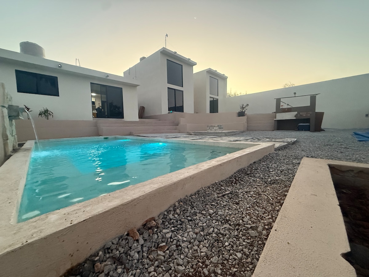 Talo, josta on pääsy Rioon. Nauti elämyksestä mukavimmassa Casa de Campossa Huasteca Potosinan sydämessä. Rentoudu koko perheen ja ystävien kanssa tässä kodissa, jossa rauha ja luonto hengittävät. Kestävän energian ansiosta talossa on parhaat tilat, joissa voit nauttia majoittumisestasi mukavimmalla tavalla. Ilmastointi, kevyt, lämmin vesi, uima-allas, jäätelökone, grilli, tie yksityiselle joelle, muun muassa. Apinat, Tamul, Tamasopon vesiputoukset 20 min