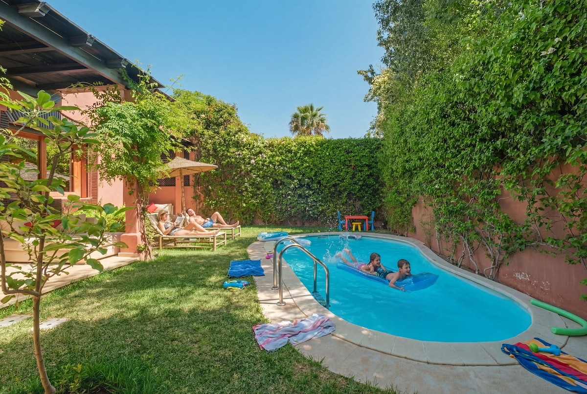 Majoitu modernissa 2 makuuhuoneen huvilassamme vain muutaman minuutin päässä Marrakechakista. Rentoudu yksityisen uima-altaan äärellä ja nauti kauniista puutarhasta, jossa on aprikoosipuita. Huvilassa on nopea WiFi, älytelevisio ja ilmastoidut makuuhuoneet, joissa on kussakin oma kylpyhuone. Pysäköinti on saatavilla. Se on alle 20 minuutin päässä kaupungin keskustasta ja vain 5 minuutin päässä Marjane-supermarketista ja McDonald'sista. Täydellinen rauhalliseen ja viihtyisään majoittumiseen!