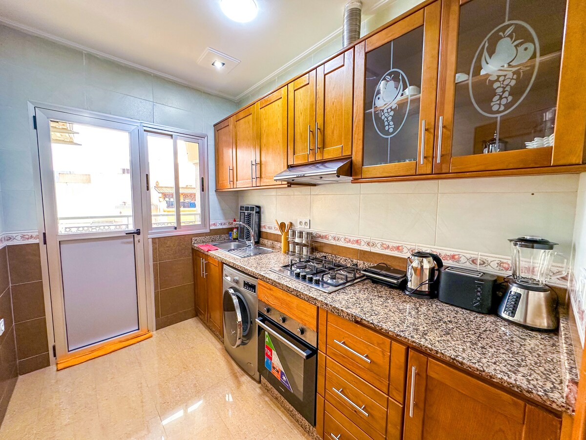 Huippusijainnissa oleva huoneisto Tangerin sydämessä Majoitu vain kahden minuutin päässä Tangerin rautatieasemalta, Tangerin kaupunkikauppakeskuksesta, kaupoista, ravintoloista ja rannalta. Tässä modernissa, täysin varustetussa huoneistossa on ilmastointi jokaisessa huoneessa, älytelevisio, nopea WiFi ja täysin varustettu keittiö, jossa on jääkaappi, pakastin, mikroaaltouuni ja pesukone. Sisältää puhtaat vuodevaatteet, pyyhkeet ja ammattimaisen siivouksen, jotta majoittumisesi sujuu mukavasti ja vaivattomasti.