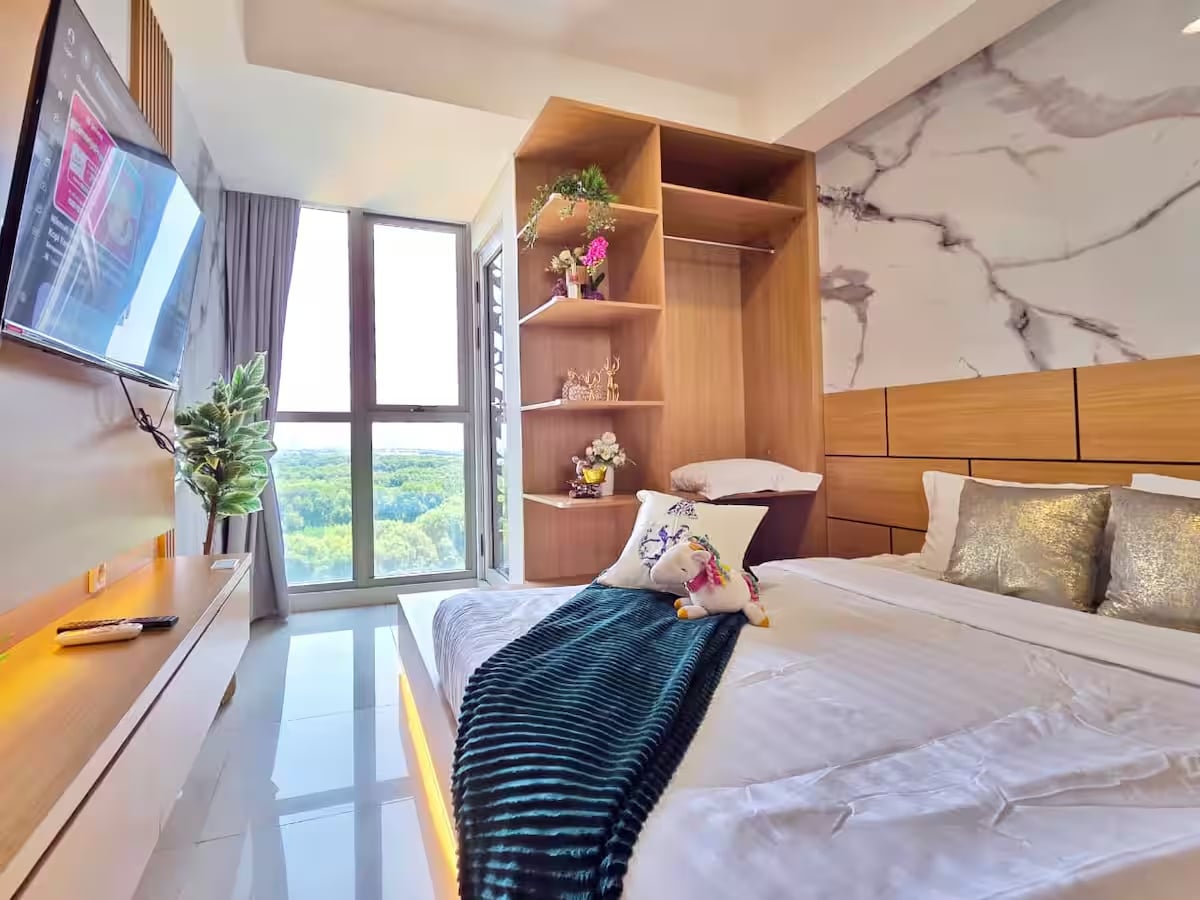 Herää luonnonvaloon ja rauhallisiin näkymiin tässä valoisassa ja viihtyisässä tilassa, jossa on moderni ilme — edullisin majoittumisemme Gold Coast PIK: ssa. Huoneessa on boutique-hotellin tunnelma, ja siinä on lämpimät puiset sävyt 📍 Sijaitsee Oakwood Hotel -kompleksissa, aivan Jakartan vilkkaimman alueen sydämessä. Ostoskeskukset, kahvilat, torit ja elämäntyylipaikat ovat vain lyhyen kävelymatkan päässä, mikä tekee majoittumisestasi vaivattoman ja kätevän.