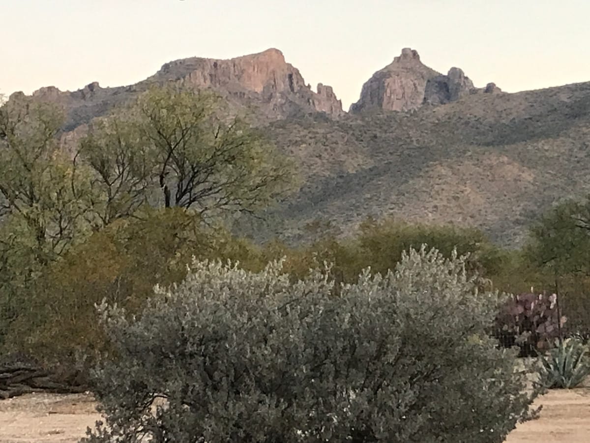 Tervetuloa Casita Del Sahuarolle Camino Del Sahuaro Ranchille! Äskettäin rakennettu (2023) casita yhdistää lounaisen viehätysvoiman ja luonteen nykyaikaisiin mukavuuksiin. Casita tarjoaa aidon Villin lännen kokemuksen, jota ei ole missään muualla. Jättiläismäisten saguarojen keskellä sijaitsevassa kohteessa on majesteettinen kaktusmetsä ja henkeäsalpaavat vuoristonäkymät. Majoittumalla luoksemme koet omakohtaisesti Sonoran aavikon kauneuden, upeat auringonlaskut ja tähtikirkkaat yöt. Kaikki suoraan etuverannalta!