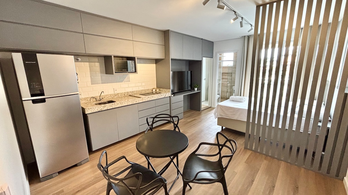 Hospede-se em um espaço inteiro, em um edifício recém-inaugurado na Rua Gomes Barbosa, com localização privilegiada: próximo ao Hotel Alfa, à UFV e ao cemitério. Apesar de o prédio e o estúdio ainda estarem em fase final de acabamento, o ambiente já está pronto para receber você com conforto e praticidade.