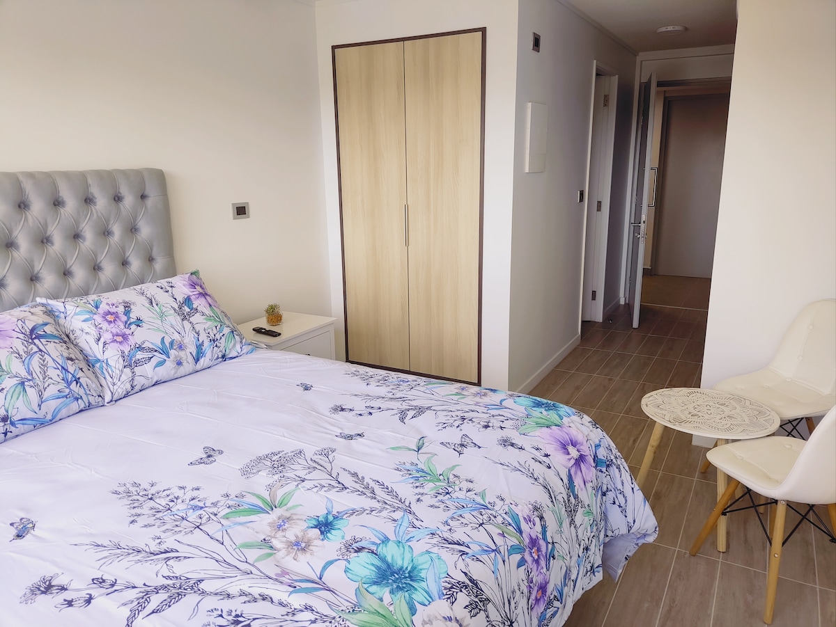 Este elegante y tranquilo departamento tiene todo lo necesario para hacer de tu estadía en Valdivia, la mejor. Cuenta con 1 habitación con cama de 2 plazas (Smart Tv incluida, Wifi) + baño privado. Otro baño, cocina amplia full equipada y un hermoso living comedor, con terraza al exterior. Además, un gimnasio equipado, piscina, quincho y sala de eventos. Y lo mejor: a solo 5 minutos del centro de Valdivia. IMPORTANTE: Se puede solicitar 2 colchones extra para que duerman 2 huéspedes mas.
