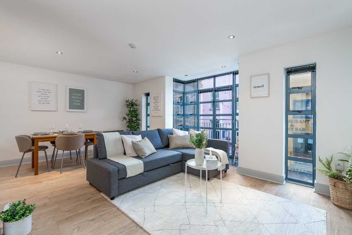 ☘ SIJAINTI! ☘ SIJAINTI! ☘ SIJAINTI! Olemme saaneet vain 5 tähden arvosteluja, 100 % vieraista majoittuisi uudelleen. Fantastinen luksusasunto sijaitsee aivan joen varrella Ha'Penny Bridgellä, rauhallinen sijainti kaupungissa, lähellä kaikkea, mutta silti niin rauhallinen, nukut hyvin ja olet silti 5 minuutin päässä Temple Barista. Huippuluokan huoneisto, joka on äskettäin remontoitu, uusi keittiö, kylpyhuone ja kaikki uudet huonekalut ja laitteet. Joustavat sisäänkirjautumisajat aikaisille saapuville lennoille. 3 minuuttia lentokenttäbussista