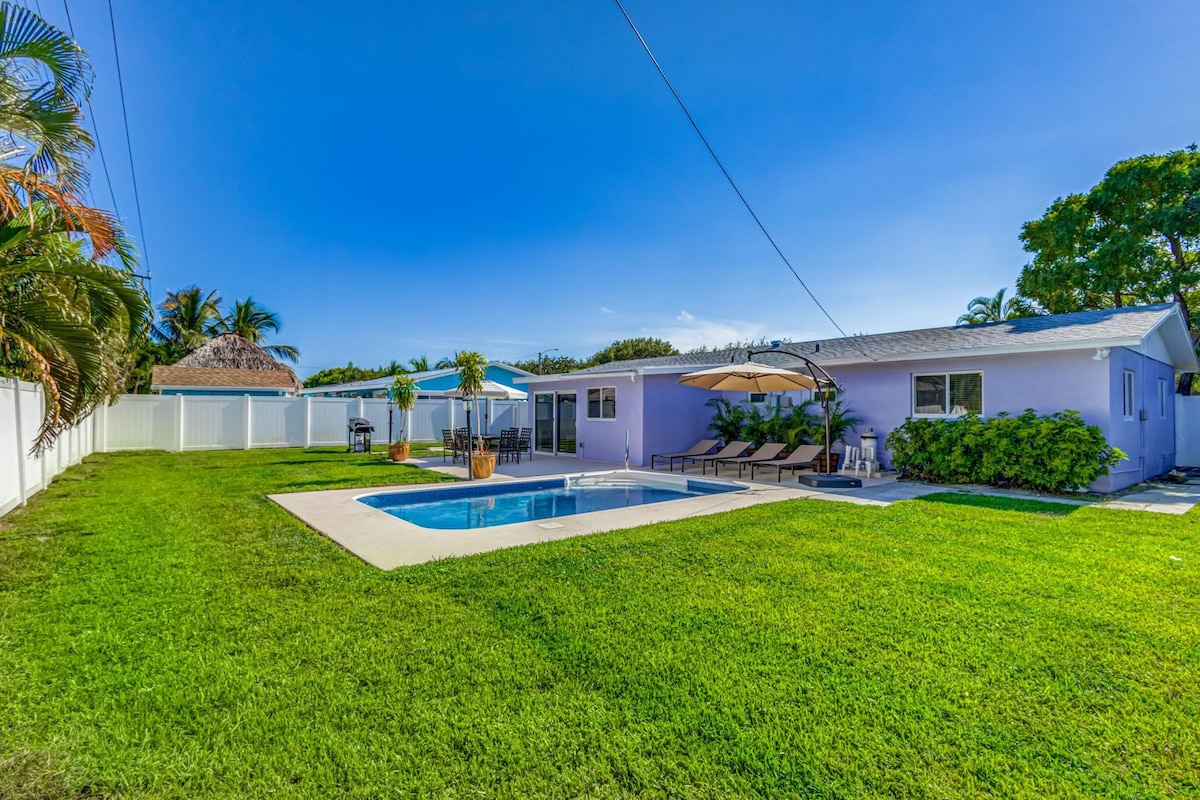 Aikaa hauskanpitoon auringossa koko perheen tai ystäväjoukon kanssa. Nauti rauhallisesta ja yksityisestä lomastasi Purple Paradisessa – täysin remontoidussa, modernisoidussa ja kauniisti sisustetussa kodissa, joka sijaitsee Tequestan sydämessä. Rentoudu uima-altaan äärellä grillatessasi tai aja 5 minuuttia ja olet kauniilla rannoilla, ravintoloissa, baareissa, puistoissa, ostoksilla, golfkentillä ja ulkona vesiaktiviteeteissä. Lemmikkieläimet ovat tervetulleita ja nauttivat varmasti täysin aidatusta yksityisestä takapihasta.