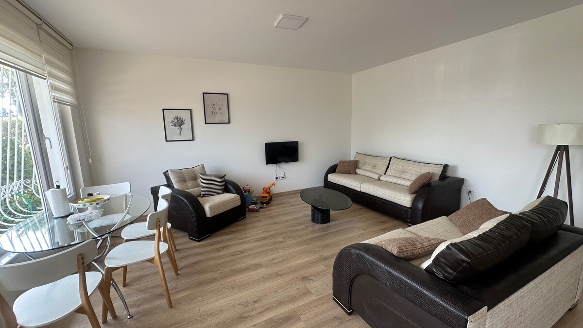 Hyvät vieraat, Huoneistomme sijaitsee kävelyetäisyydellä rannasta, ostoskeskuksista, merenrantakävely- ja pyöräilyreiteistä, hammasklinikoista, sairaaloista, ravintoloista, kahviloista ja lasten leikkipaikoista. Autollesi on varattu pysäköintialueita. Terracityn ostoskeskus, yksi parhaista ostospaikoista, on vain lyhyen kävelymatkan päässä. Nauti tyylikkäästä ja mukavasta majoittumisesta tässä keskeisellä paikalla sijaitsevassa huoneistossa.