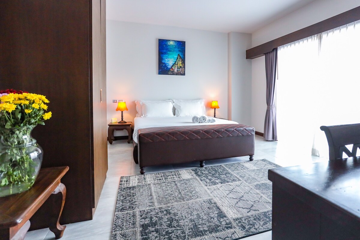 🌿Pakene rauhalliseen piilopaikkaan Ban Tai, Kanchanaburin sydämessä. Hotellimme tarjoaa puhtaita ja tyylikkäitä huoneita, jotka sijaitsevat viihtyisän kahvilan yläpuolella, ja rentouttava thaihierontamyymälä tarjoaa kaiken, mitä tarvitset virkistävään majoittumiseen. Yksityinen 🛏️huoneesi - Valoisa, ilmastoitu tila, jossa on mukava queen-vuode tai parivuode - Kylpyhuone, jossa on lämmin suihku ja välttämättömyystarvikkeet - Suuret ikkunat tai parveke, jolta on rauhoittava puutarha- tai katunäkymä - Nopea wifi, älytelevisio ja pieni työpöytä