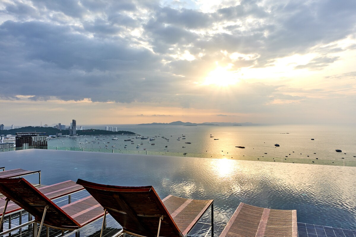 芭提雅市中心网红无边泳池海景公寓|A0J城市夜景、|步行至海滩、六巷soi6、