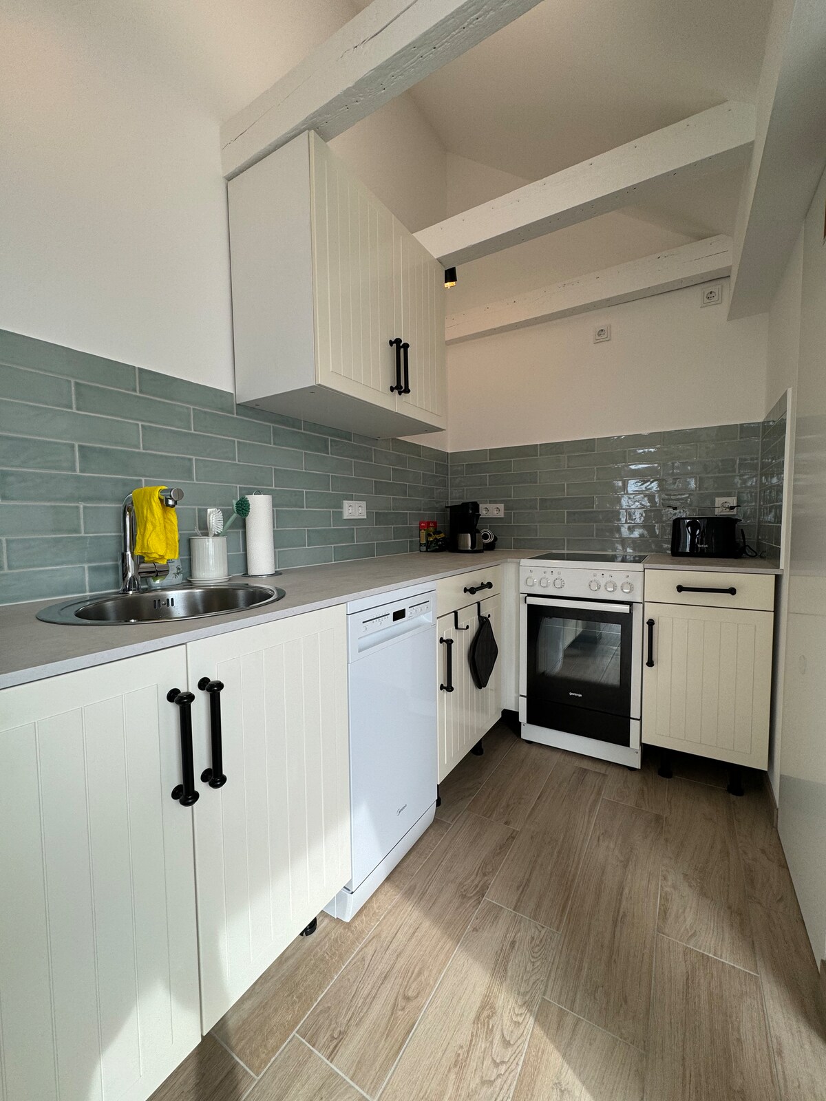 Täysin kalustettu kahden huoneen huoneisto,savuton, 1. kerros, 62m ², ylimääräinen suuri parveke, jossa on pöytä, tuolit,sateenvarjo + sähkögrilli. Keittiössä on jääkaappi, pakastin, mikroaaltouuni, vedenkeitin, kahvinkeitin, leivänpaahdin, astiat,ruokailuvälineet ja mausteet. Kylpyhuone, jossa on kylpyamme+suihku,kylpytakki,pesukone(1Wo. ilmainen),lattialämmitys. Olohuoneessa on SATELLIITTI-TV, DVD-SOITIN ja vuodesohva, jossa on vuodetoiminto. Makuuhuone, jossa on parivuode ja suuri vaatekaappi. Polkupyöränvuokraus pyynnöstä.