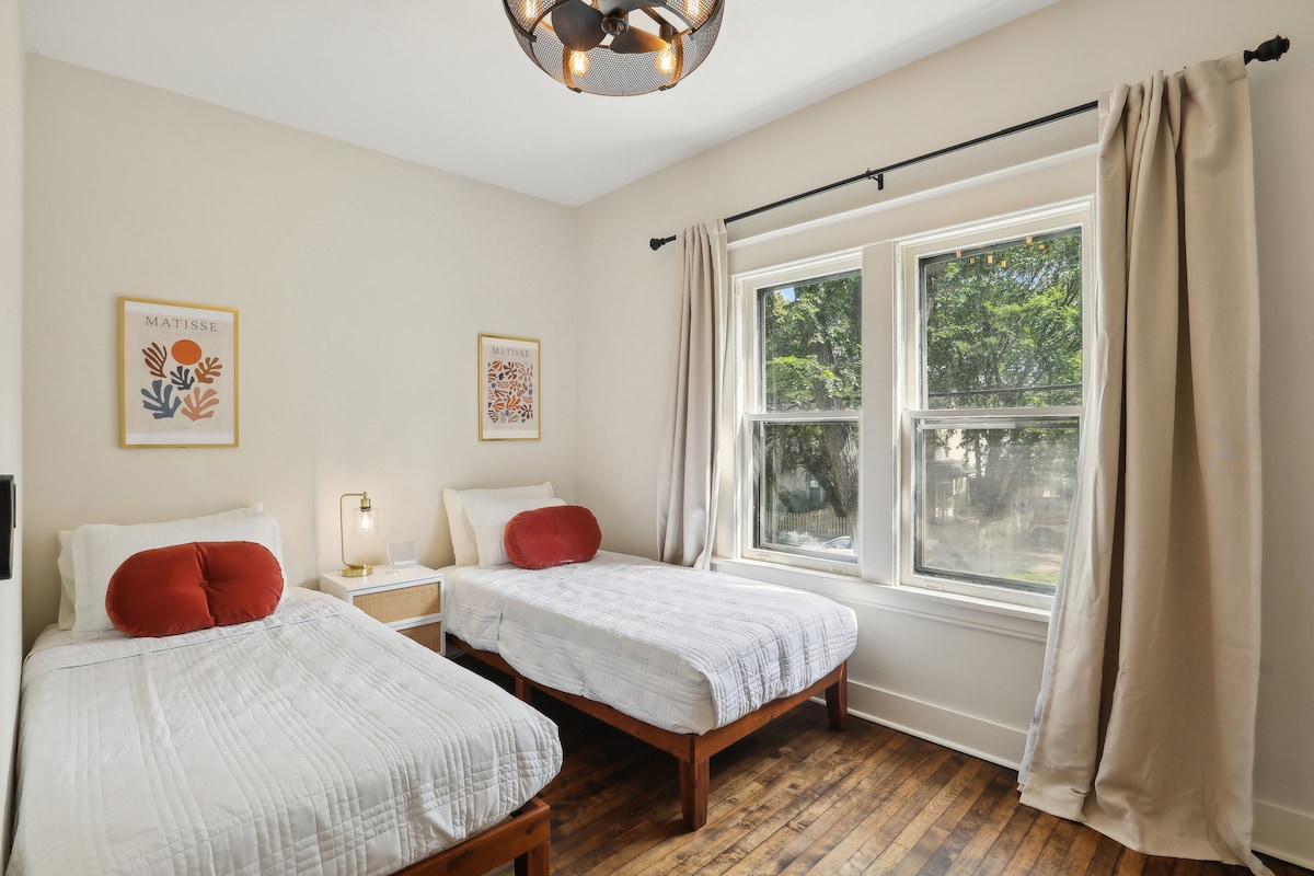 Suunnittelijan omistama Uptownin piilopaikka vain 1 korttelin päässä LynLakesta! Pysäköinti kadun ulkopuolella. Kävele parhaisiin paikkoihin, kuten Wrecktangle Pizzalle, Up Down Arcade -baariin tai Lake Harrietiin. Nauti yksityisestä queen-vuoteellisesta makuuhuoneesta, täysikokoisesta päivävuoteesta, pesukoneesta/kuivausrummusta, erillisestä lämmityksestä/ilmastoinnista ja täysin varustellusta keittiöstä. Tyylikäs sisustus ja kaunista luonnonvaloa koko kohteessa. 15 minuutin matka MSP:n lentoasemalle. Yksi koira on sallittu kohteessa maksua vastaan. Viesti toisen koiran hyväksymisestä. Täydellinen viihtyisään, kävelyyn sopivaan majoittumiseen Minneapolisin sydämessä.