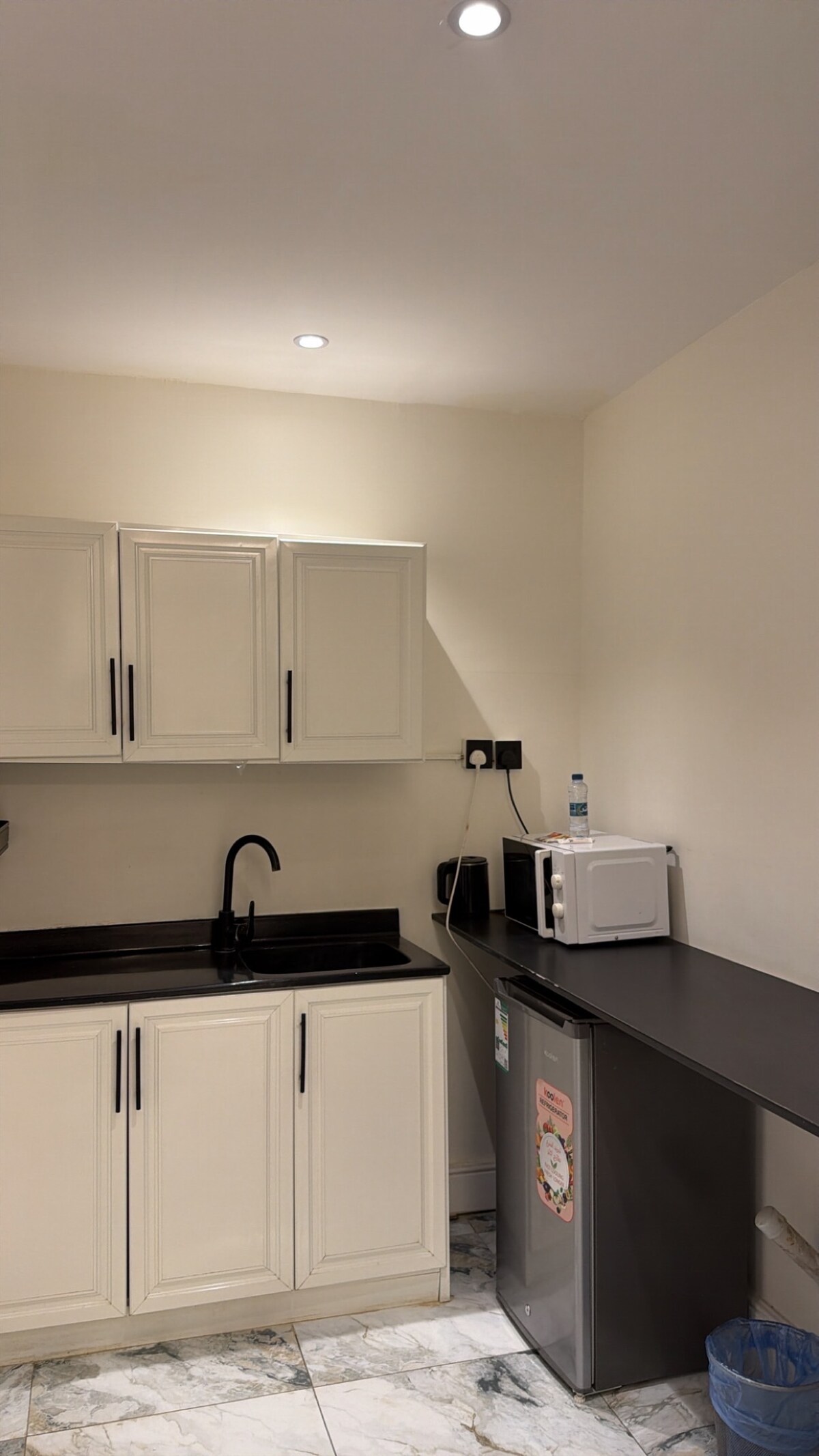 Koe ainutlaatuinen elämys yksityisessä 1 makuuhuoneen kohteessa, joka tarjoaa rentoutumista ja mukavuutta. Huoneistossa on vuode ja olohuone, jossa voit nauttia 65 tuuman älynäytöltä katselusta. Siellä on myös erillinen keittiö ja kahvia kaikkien tarpeidesi täyttämiseksi. Sijainti on lähellä kaikkia palveluja, matkailukohdetta ja Riyadh Season -alueita (Boulevard City World, Kingdom Dome Arena ja muut teatterit) 5 minuutin sisällä. Haluaisimme mielellämme majoittaa sinut ja kerro meille kokemuksestasi!