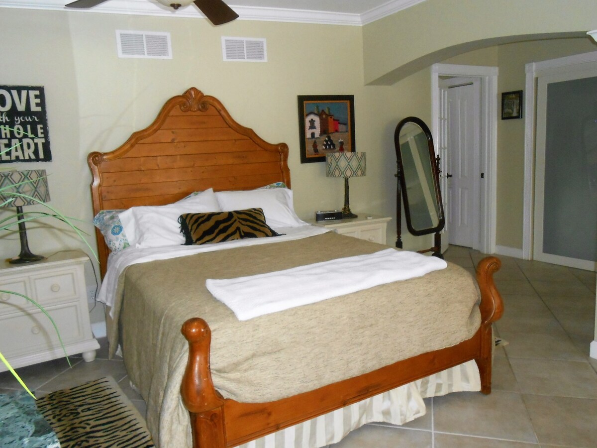 Yksityinen huoneisto - 1 makuuhuone, jossa king-size-vuode, 1 täysikokoinen kylpyhuone, erillinen oleskelu- ja ruokailutila. Täysin varustettu keittiö. Ilmainen pysäköinti, kaunis keidas, jossa on suolavesiallas, poreallas ja patio. Huvimaja, jossa on nuotiopaikka, baari-be-cue, 2 TV: tä, ilmainen WiFi. Tämä EI OLE juhlapaikka, vaan paikka rentoutua uima-altaassa, porealtaassa tai rentouttavissa illallisissa kotona Miamin tapahtumapaikoissa vierailun jälkeen. Sijaitsee rauhallisessa naapurustossa, 3 km: n päässä ostoksista ja ravintoloista. Tämä on kotisi poissa kotoa!