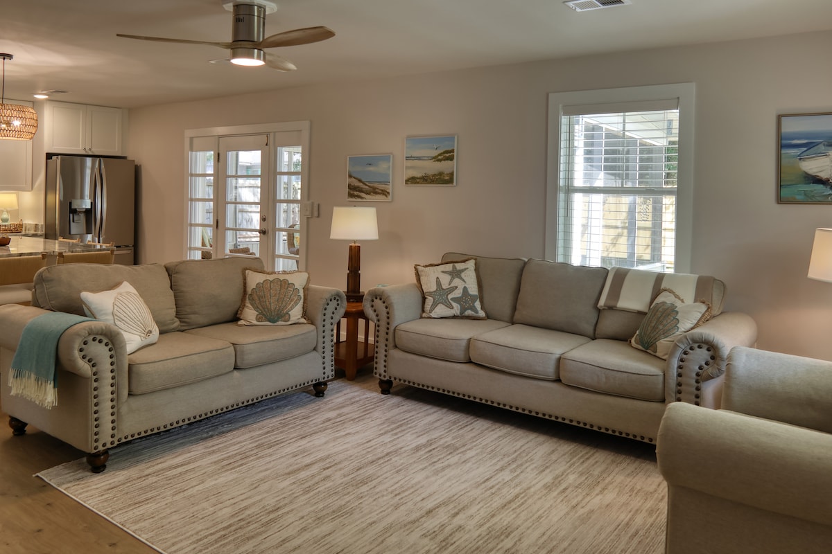 NEW! Coastal Escape! Steps to MarshWalk! Fire Pit!