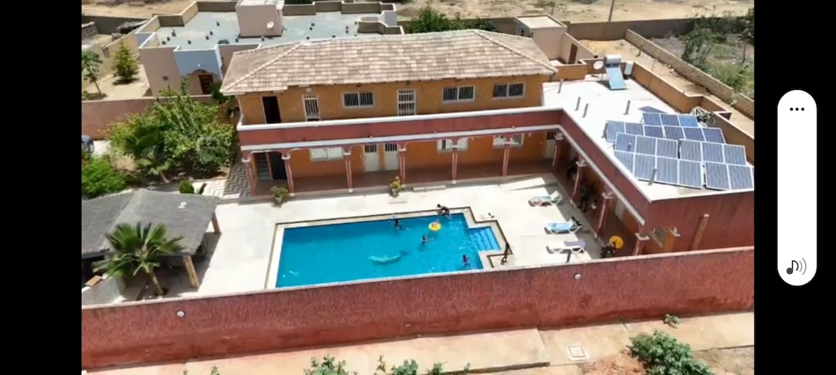 Détendez-vous dans cette belle villa de 800 mètre carrée dans une cité sécurisée . Séjournez dans une villa calme avec un dépaysement et une évasion assurée . Situé à seulement 3mn de la lagune de somone et de la plage Royal Baobab (Decameron),prenez une bouffée d'oxygène à seulement 1h de Dakar et profitez de moments mémorables en famille ou entre amis. Mobiliers et décoration faite avec beaucoup d'amour et de nombreuses pièces provenant de nos voyages. Vous vous sentirez chez vous !