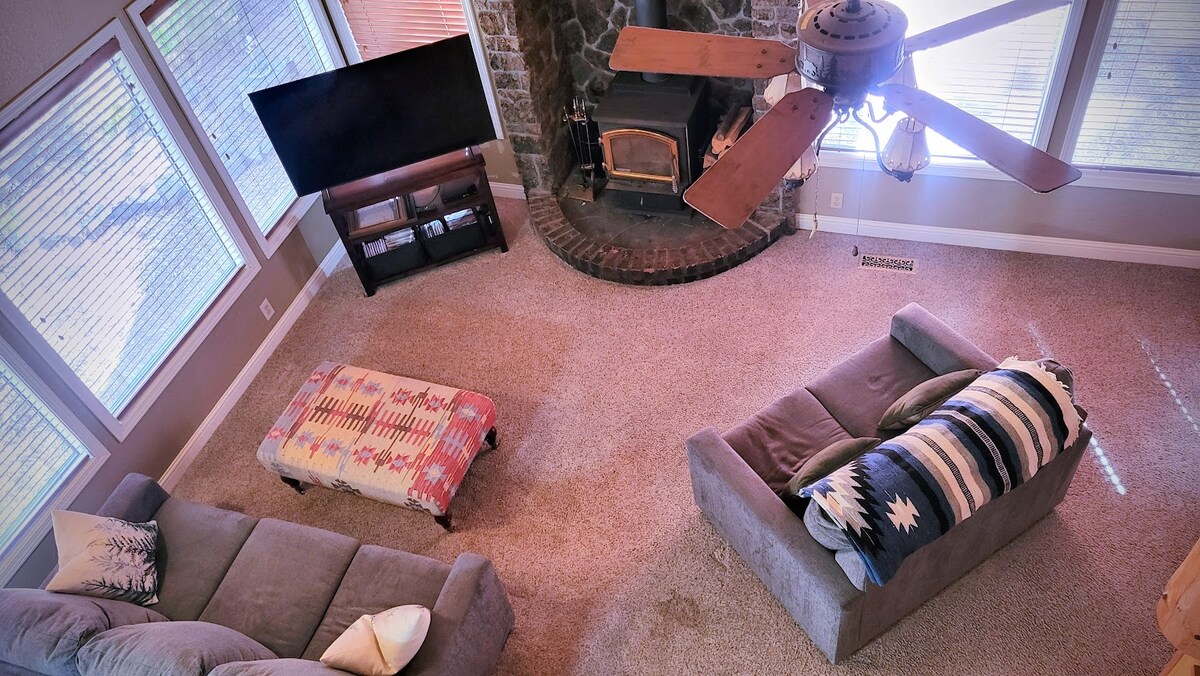 Kodikas kaksikerroksinen kolmionmuotoinen mökki Ponderosa-puiden keskellä rauhallisella asuinalueella. 5 minuutin ajomatka Sunriver Villageen, 16 minuuttia. Mt Bachelor, 20 m Bend keskustassa. Olohuoneessa on mukava sohva, yksi nojatuoli ja televisio. Möissäni on hyvin varustettu keittiö, pesutupa, jossa on W/D, kylpyhuone/suihku alakerrassa. Yläkerran 2 makuuhuonetta queen-size-vuoteella. Käytävässä yläkerrassa on puuterihuone/wc. EI TUPAKOINTIA/EI JUHLIA/ENINTÄÄN 4 HENKILÖÄ. Jätä kohteeni samaan kuntoon kuin missä se oli majoittumisesi alussa. Kiitos 😄