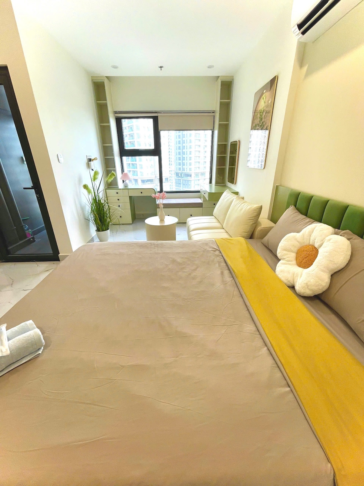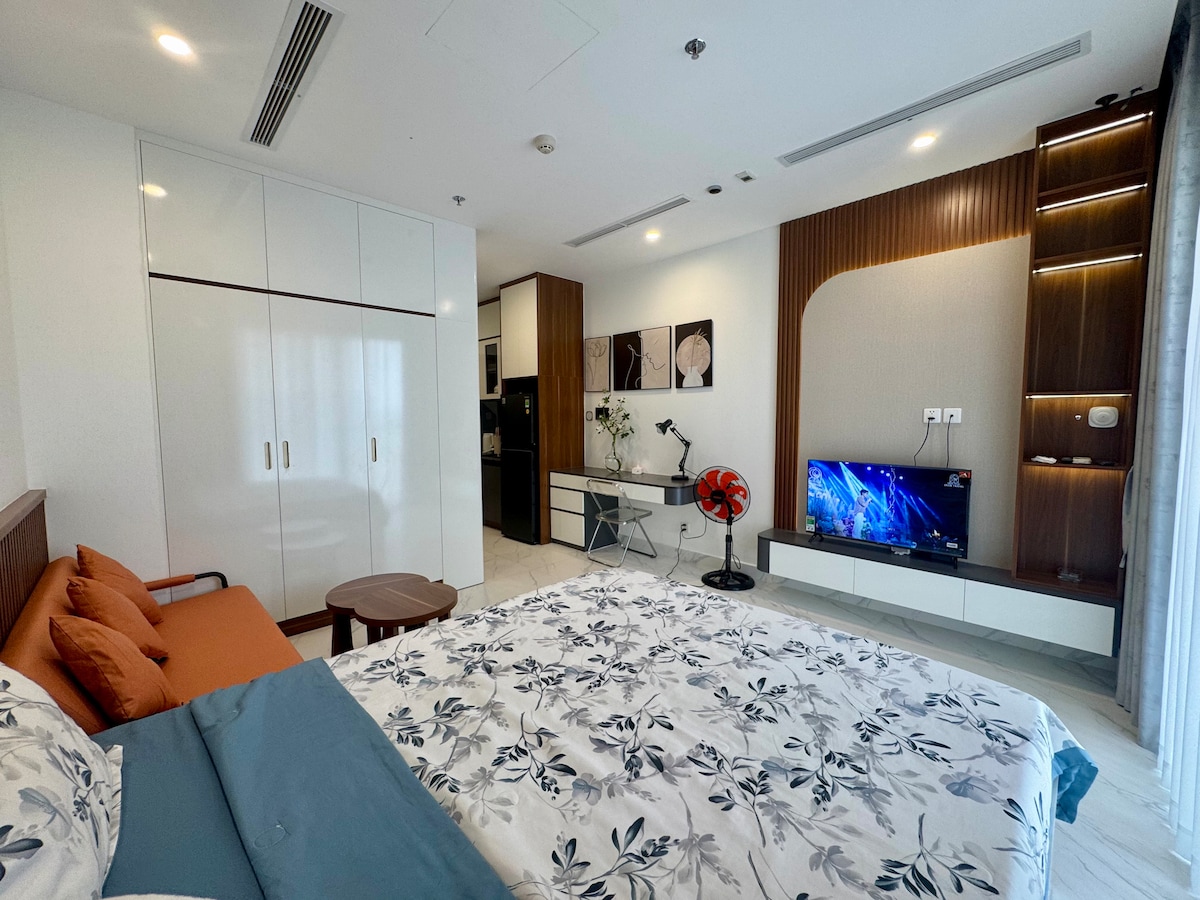 - 5* moderni aito design-tyyli - Avoin näköala - Ylelliset huonekalut + Super King -vuode 2mx2m2 + 2Tv 55" & 43" + Netflix 4K + Soundbar + sumutin + ruokapöytä ja teehissi + kivennäisvesi, kahvila + siipitön tuuletin + vaatekaappi, istuimet, meikkipöytä, vedenlämmitin, wifi, keittiön ääni, jääkaappi, pesukone, uuni ja mikroaaltouuni + Kuuntele mainitsematonta Youtube-musiikkia - Keskeinen sijainti muutaman askeleen päässä Vincom Megamallista ja Water Music Squarelta - Hiljainen lepo, yritä rentoutua ja työskennellä työskennellessäsi