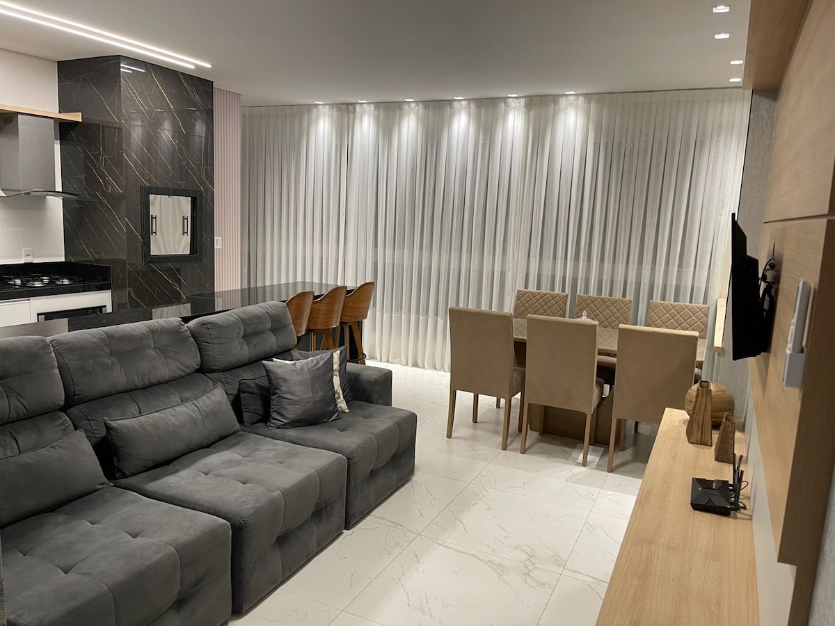 Moderni, tyylikäs ja korkeatasoinen huoneisto Meia Praiassa, vain 450 metrin päässä merestä. Tarjolla on 3 sviittiä, ilmastointi, yksityinen grillausgrilli, kotitoimisto ja 3 parkkipaikkaa. Kaunis näkymä Perequê-joelle ja luontoon, se on rauhallisalla ja asuinalueen kadulla, lähellä kaikkea. Ihanteellinen perheille, pariskunnille ja ryhmille, jotka haluavat mukavuutta, strategisen sijainnin ja käytännöllisyyttä tehdä kaiken kävellen.