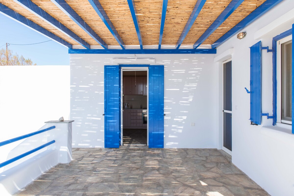 Kalkittu talo kukkulalla, Saarivibet ja moderni tunnelma. WiFi toimii viiveettä, Viileä ilma vie lämmön pois. Kiipeä 60 askelta, jalkasi saattavat polttaa, Mutta 180 katselua on sinun paluusi. Ja jos janoat, älä mene liian kauas Helpotus odottaa alla: baarissa! Aito kreikkalainen elämys