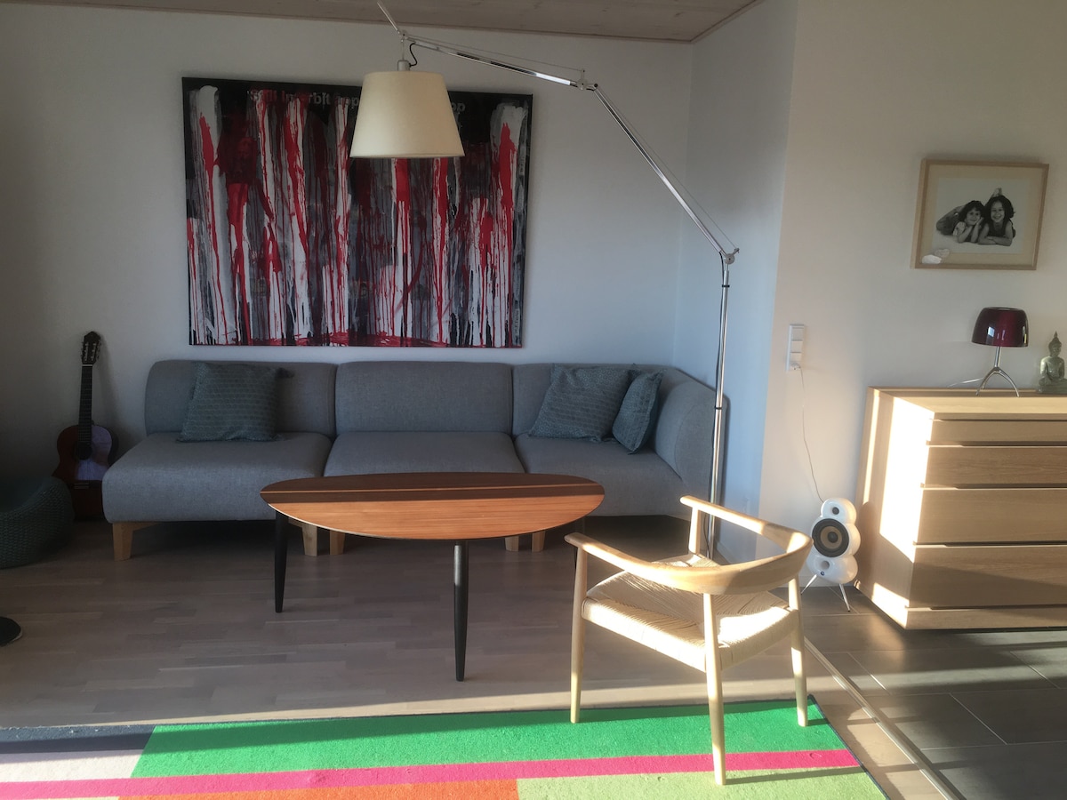 Ihana erillinen valoisa 70 neliömetrin huoneisto, jossa on kolme huonetta: keittiö-perhehuone, kylpyhuone ja makuuhuone. Huoneiston edessä on ulkoalue, jossa on kahvilapöytä ja tuoleja. Ostoksia voi tehdä alle kilometrin päässä sijaitsevassa kaupassa, ja ympäristö on viehättävä. On mahdollista lainata vauvan sänkyä, ja lemmikit ovat sallittuja maksua vastaan. Jos sinulla on vanhempia lapsia (enintään kaksi), on mahdollista saada ilmapatja. Ympäröivät nähtävyydet: Løvenborgin jumalat, Holbækin kaupunki, Istidsruten, Skjoldungene Land ja paljon muuta.